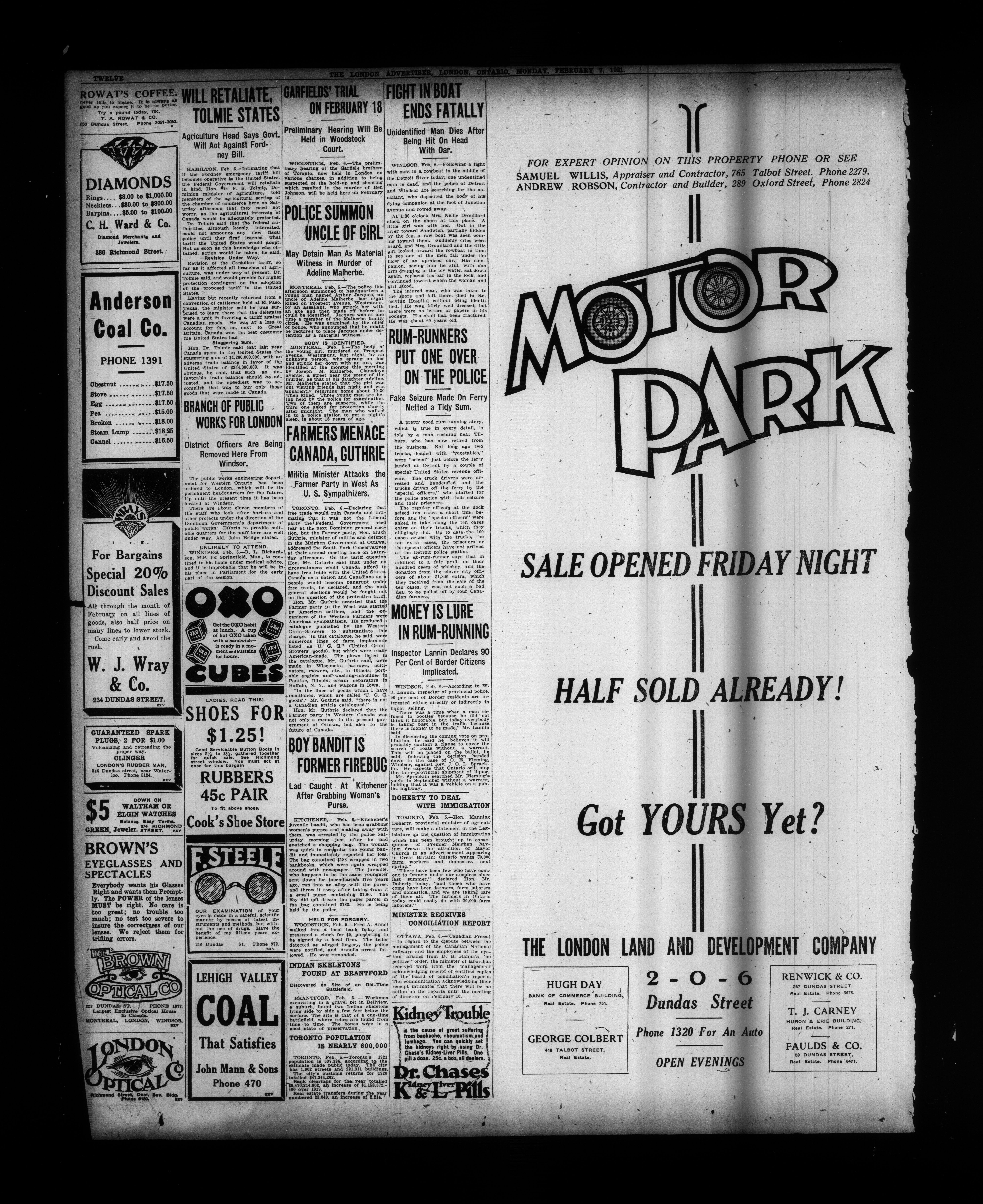 London advertiser. : The London advertiser : 57th Year, No. 22940 (February 7, 1921)