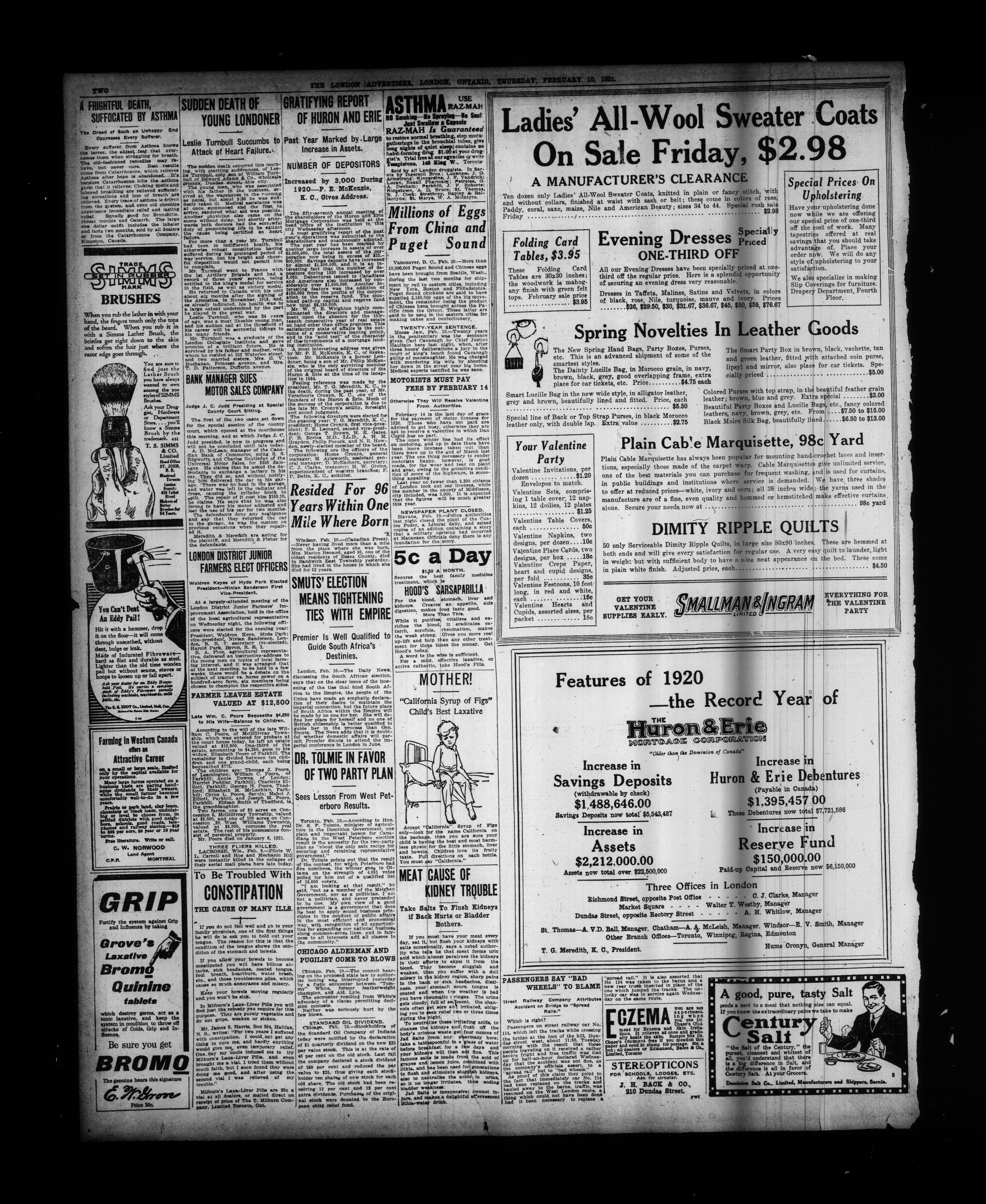 London advertiser. : The London advertiser : 57th Year, No. 22943 (February 10, 1921)