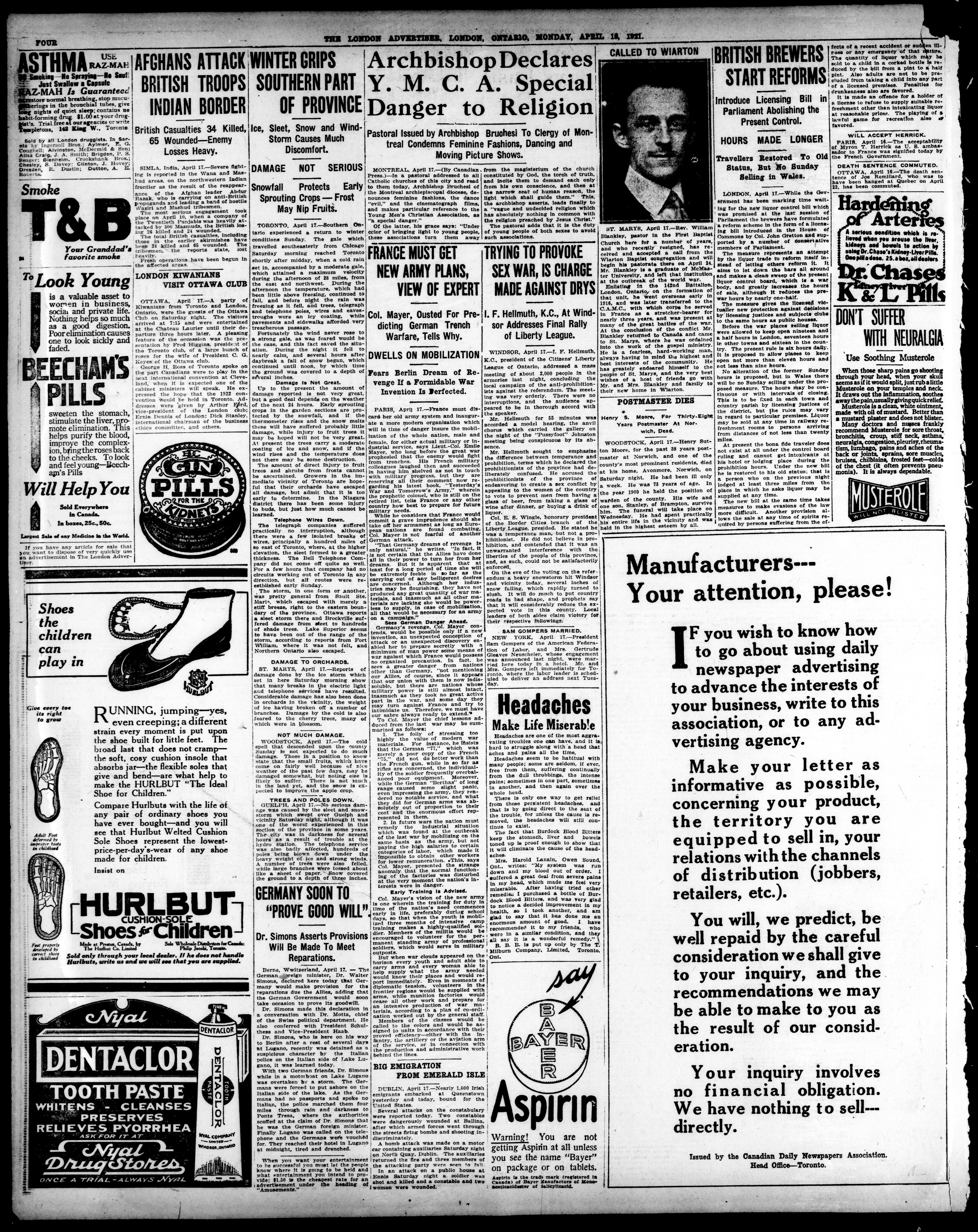 The London Advertiser : 57th Year, No. 23000 (April 18, 1921)