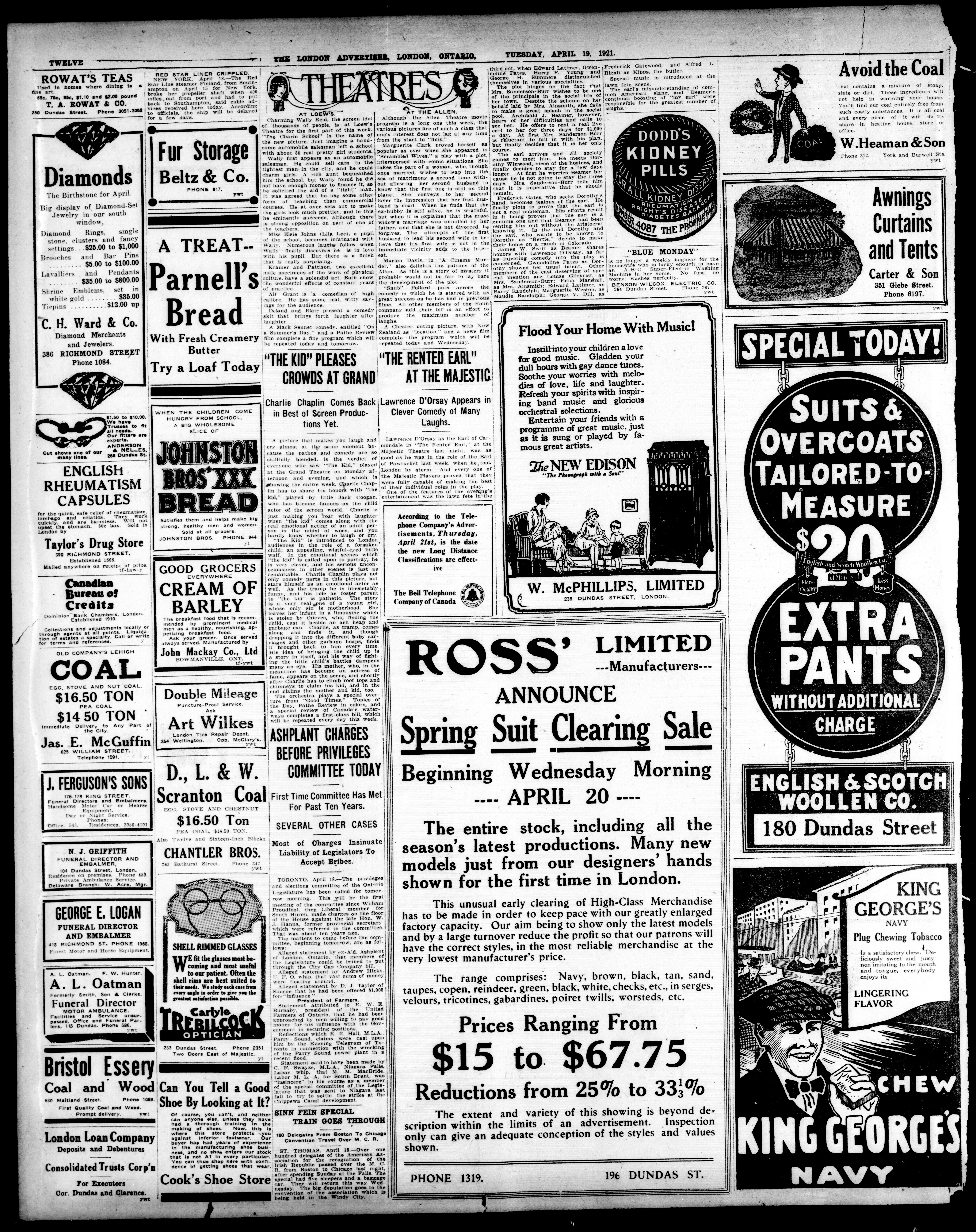 London advertiser. : The London Advertiser : 57th Year, No. 23001 (April 19, 1921)