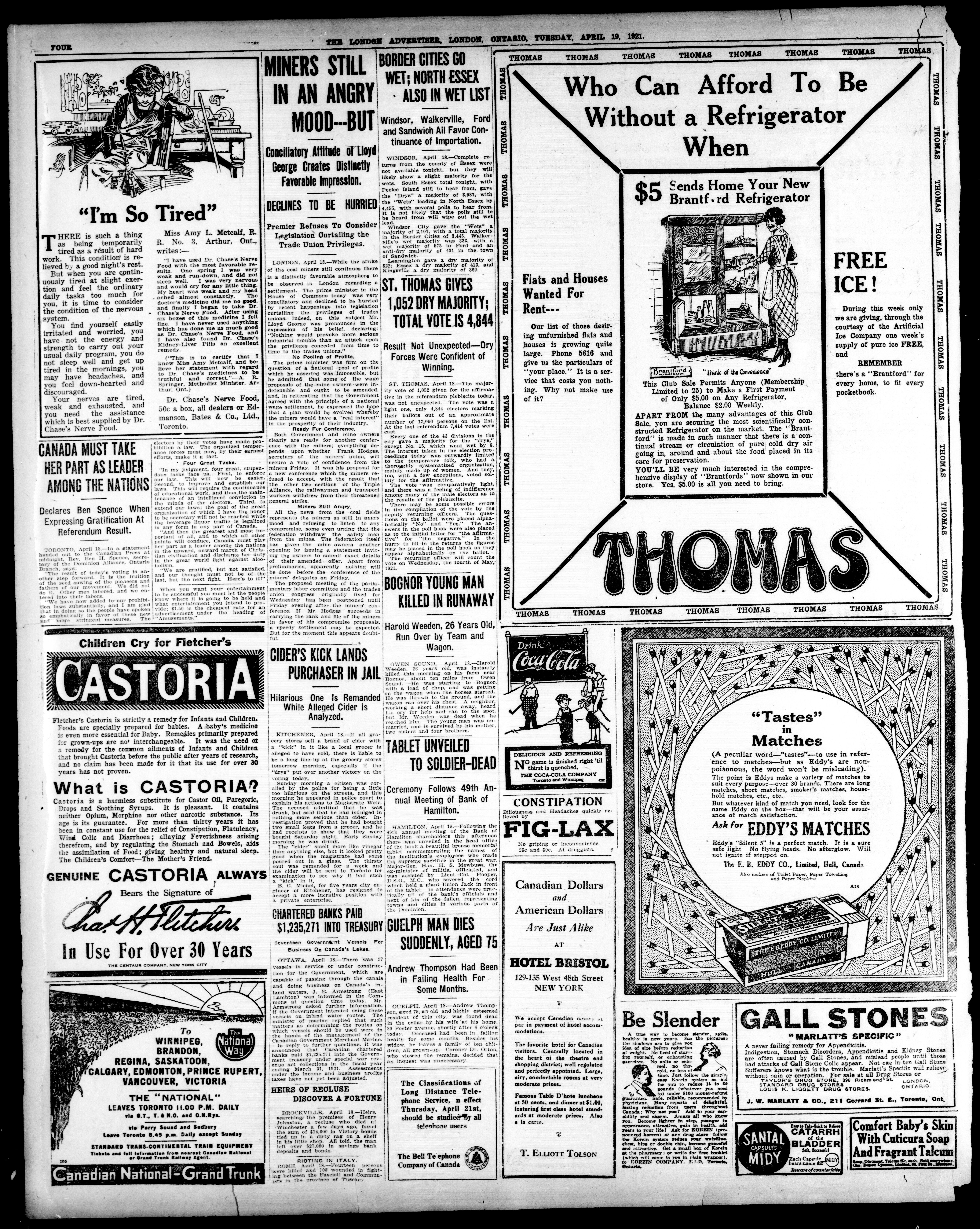 - The London Advertiser : 57th Year, No. 23001 (April 19, 1921)