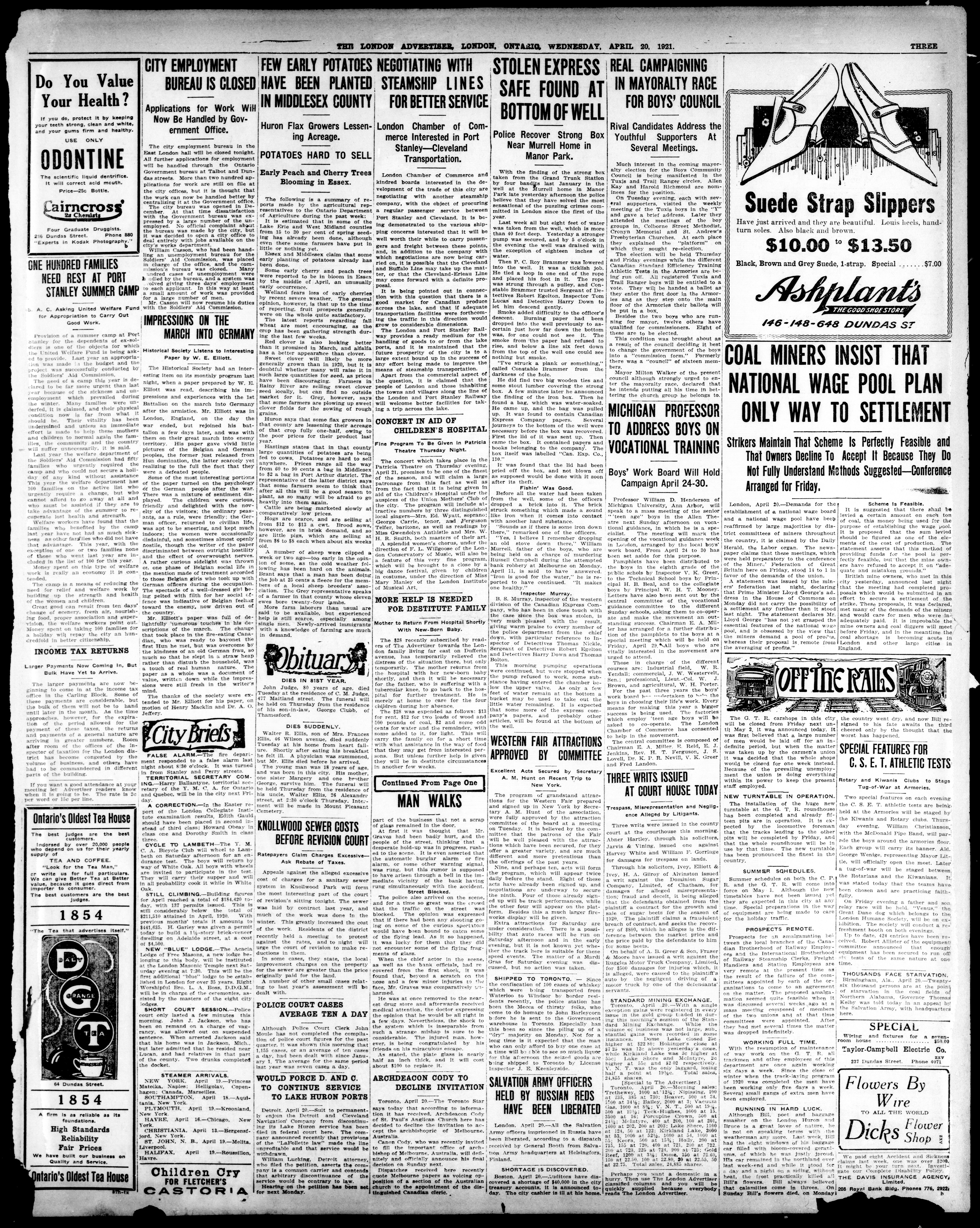 London advertiser. : The London Advertiser : 57th Year, No. 23002 (April 20, 1921)