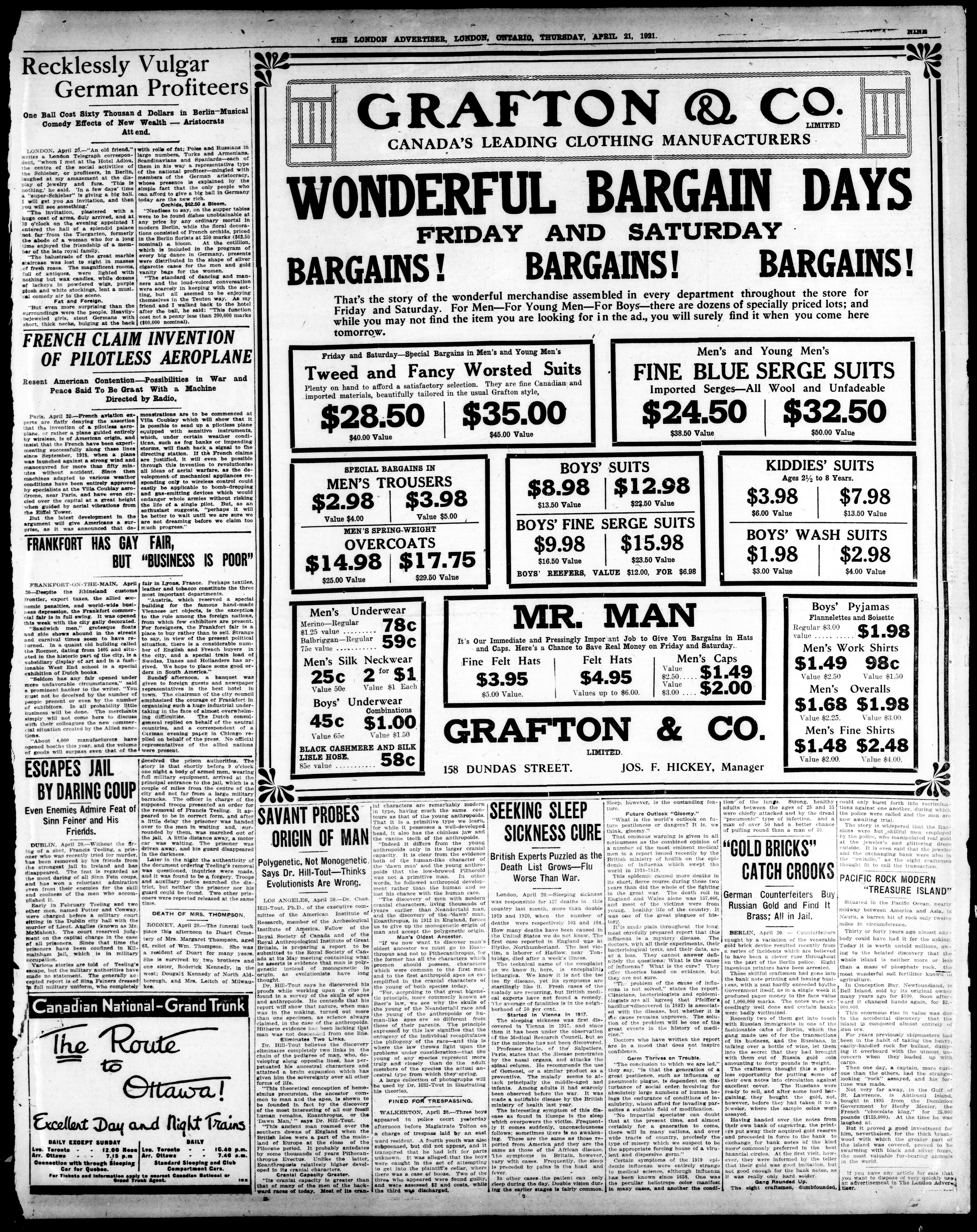 - The London Advertiser : 57th Year, No. 23003 (April 21, 1921)
