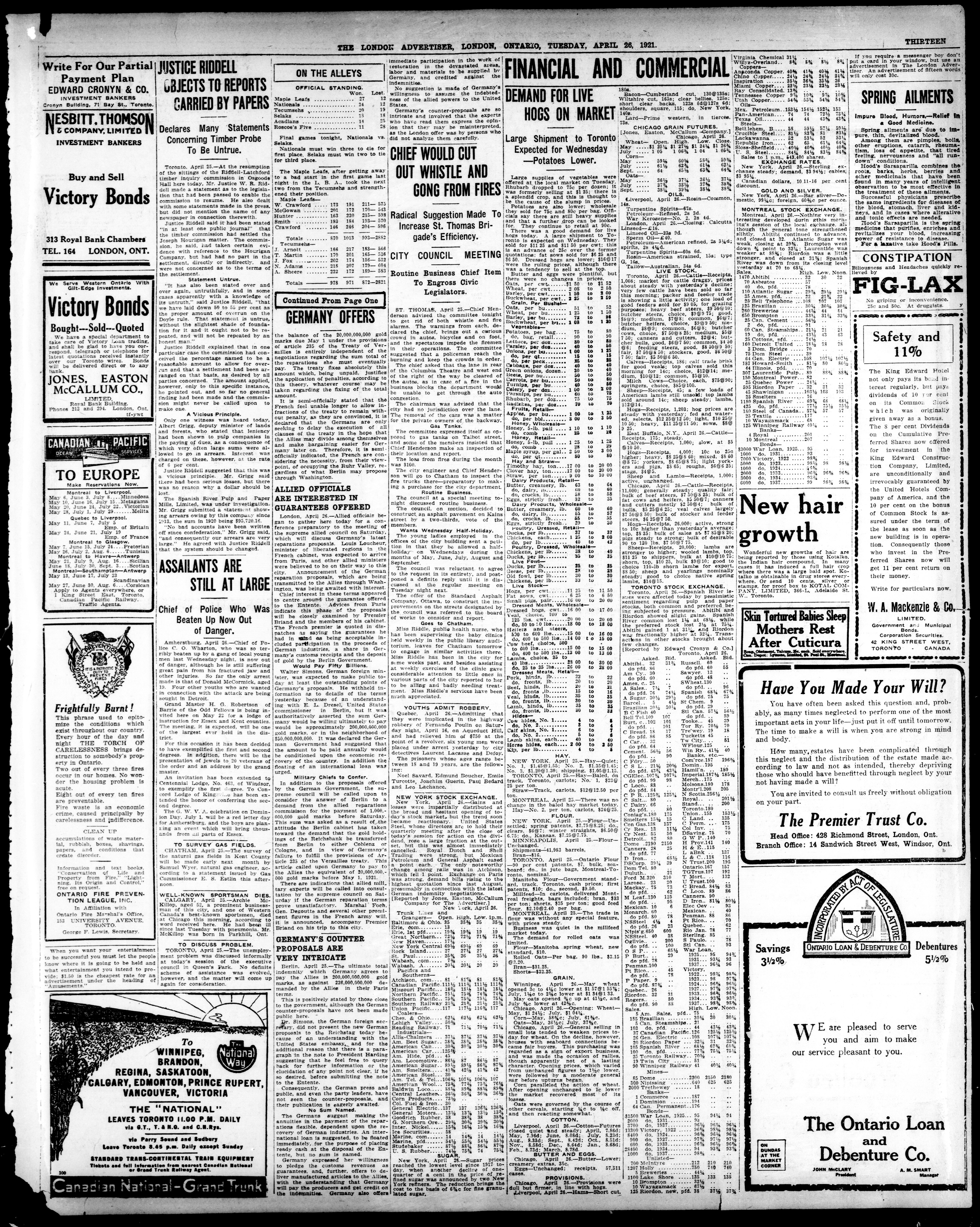 - The London Advertiser : 57th Year, No. 23007 (April 26, 1921)