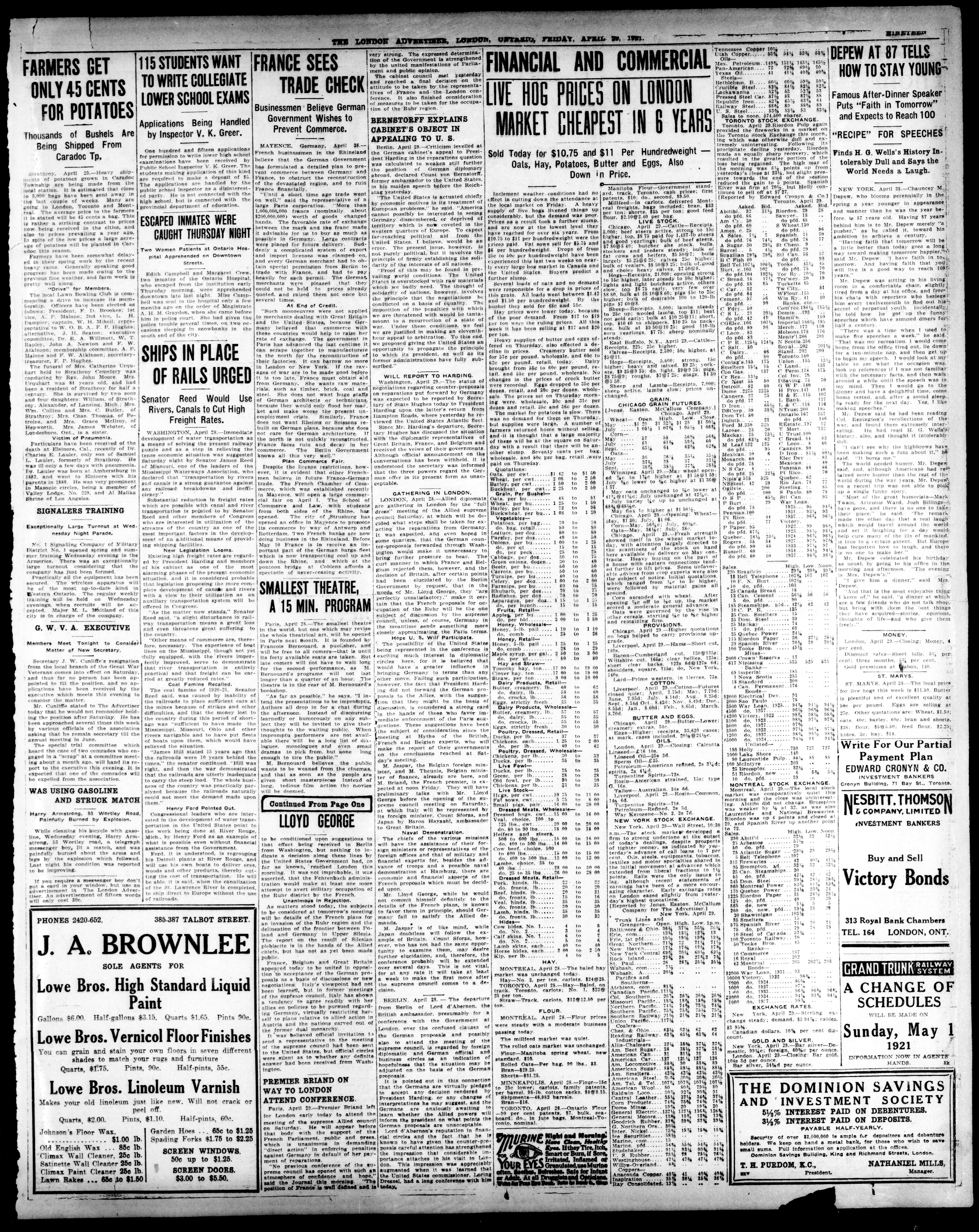 - The London Advertiser : 57th Year, No. 23010 (April 29, 1921)