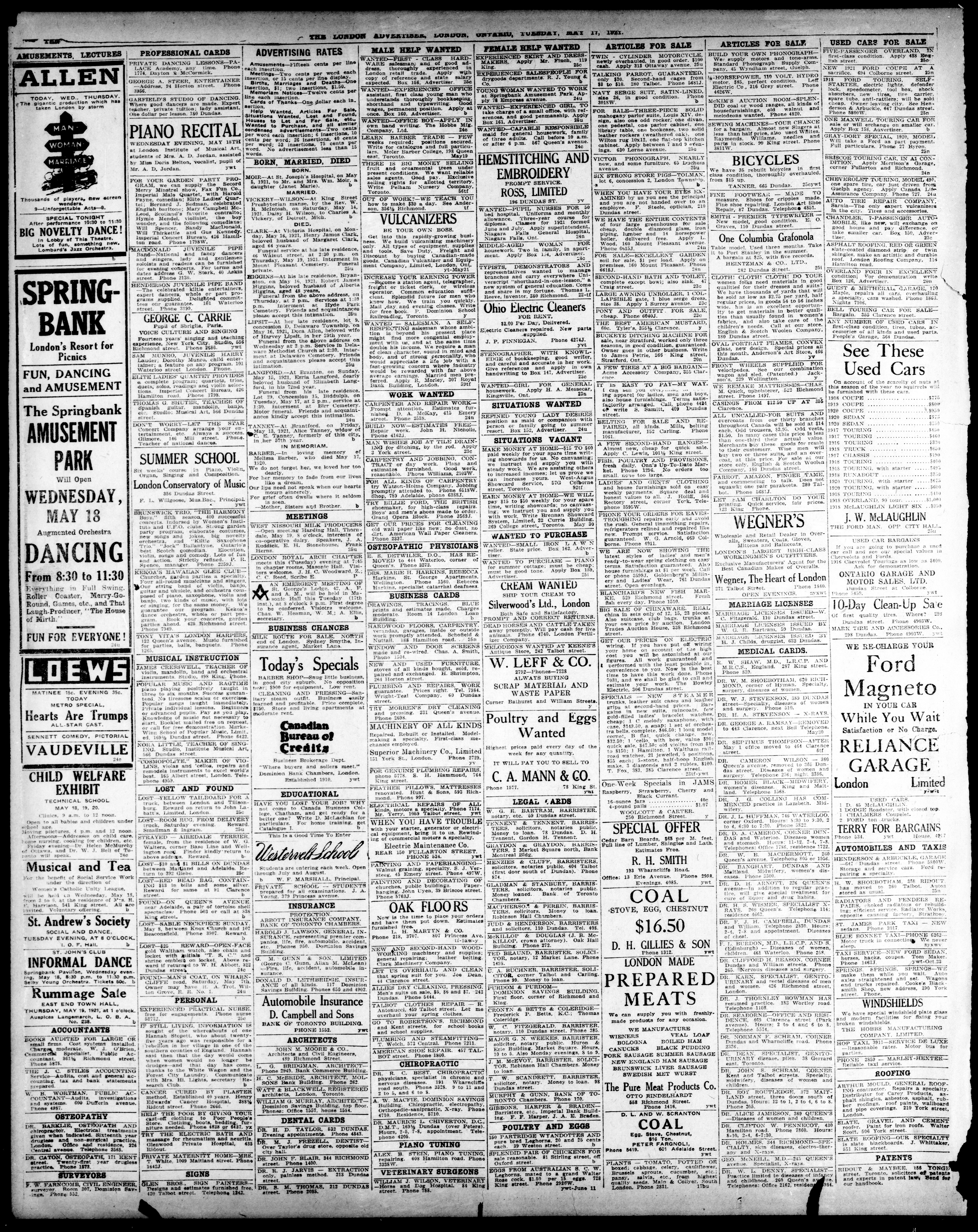 London advertiser. : The London Advertiser : 57th Year, No. 23025 (May 17, 1921)