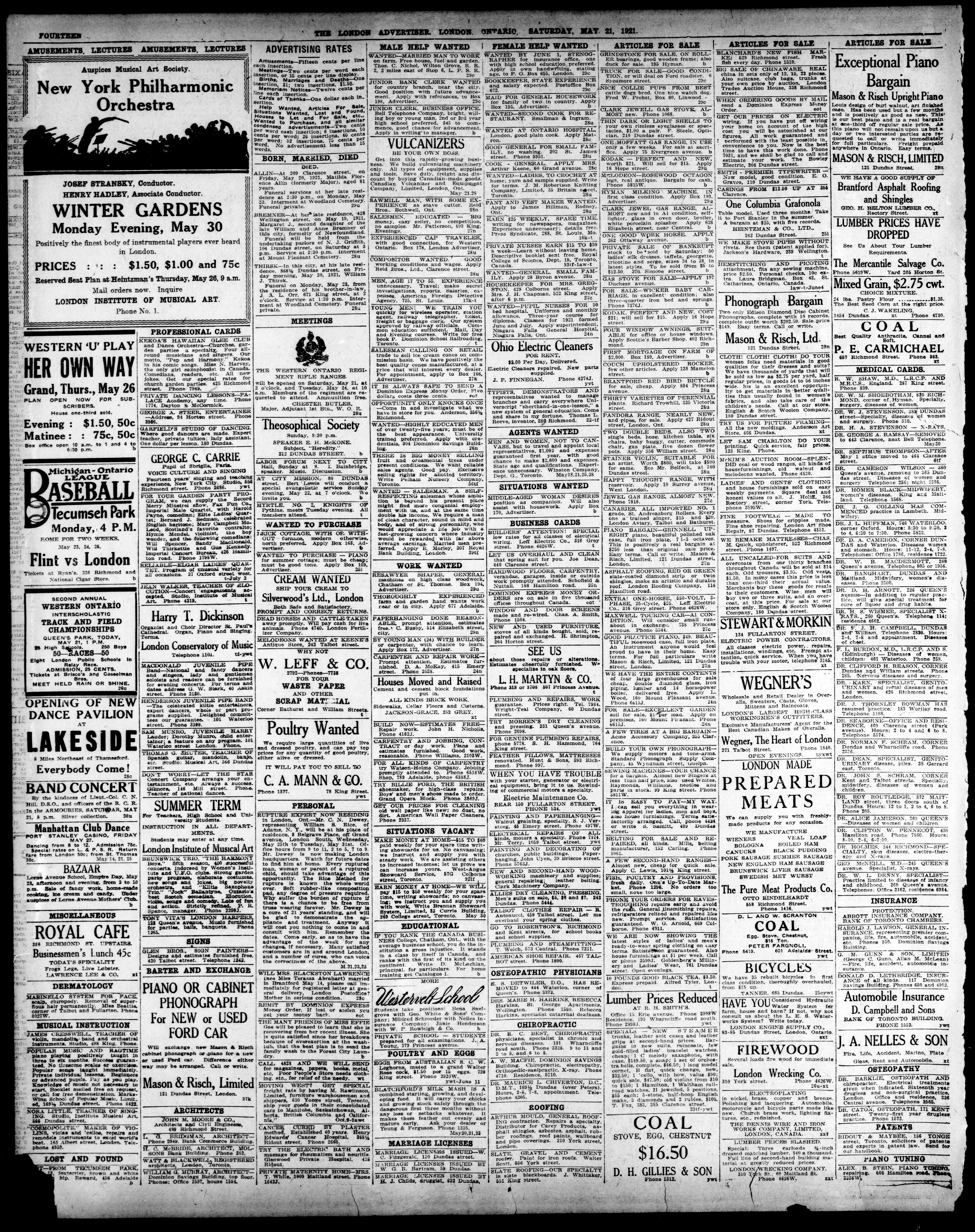 London advertiser. : The London Advertiser : 57th Year, No. 23029 (May 21, 1921)