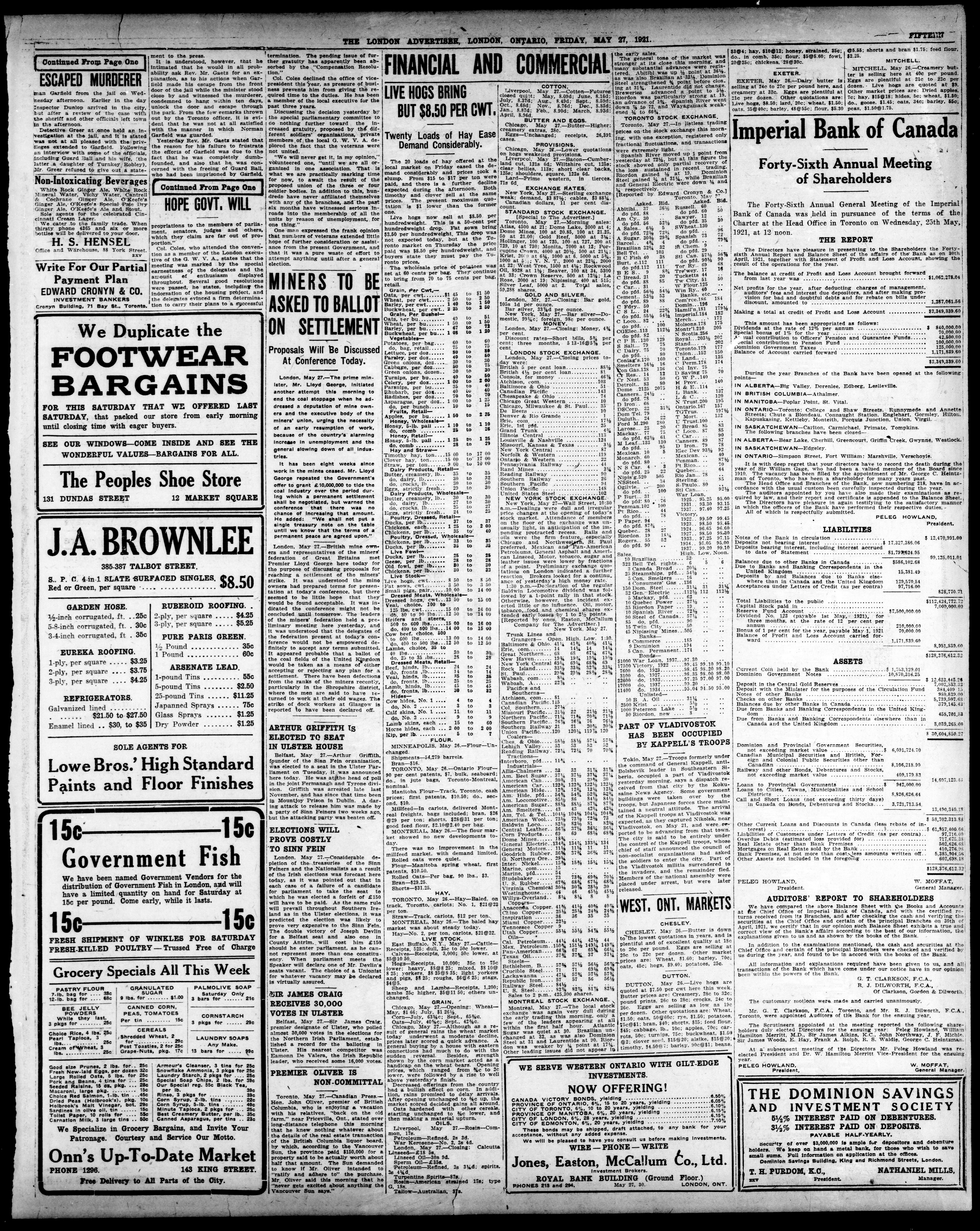 London advertiser. : The London Advertiser : 57th Year, No. 23034 (May 27, 1921)