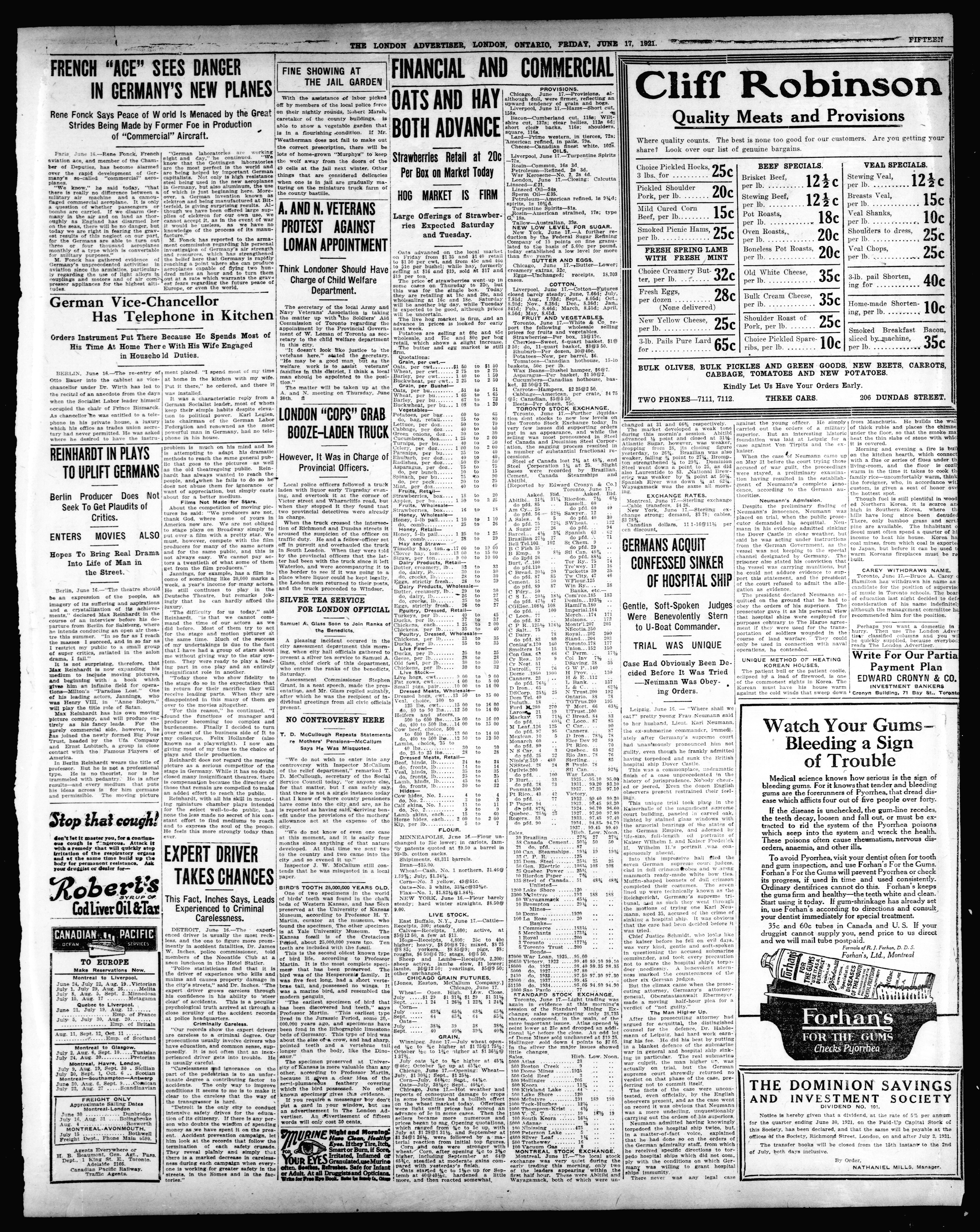 London advertiser. : The London Advertiser : 57th Year, No. 23052 (June 17, 1921)