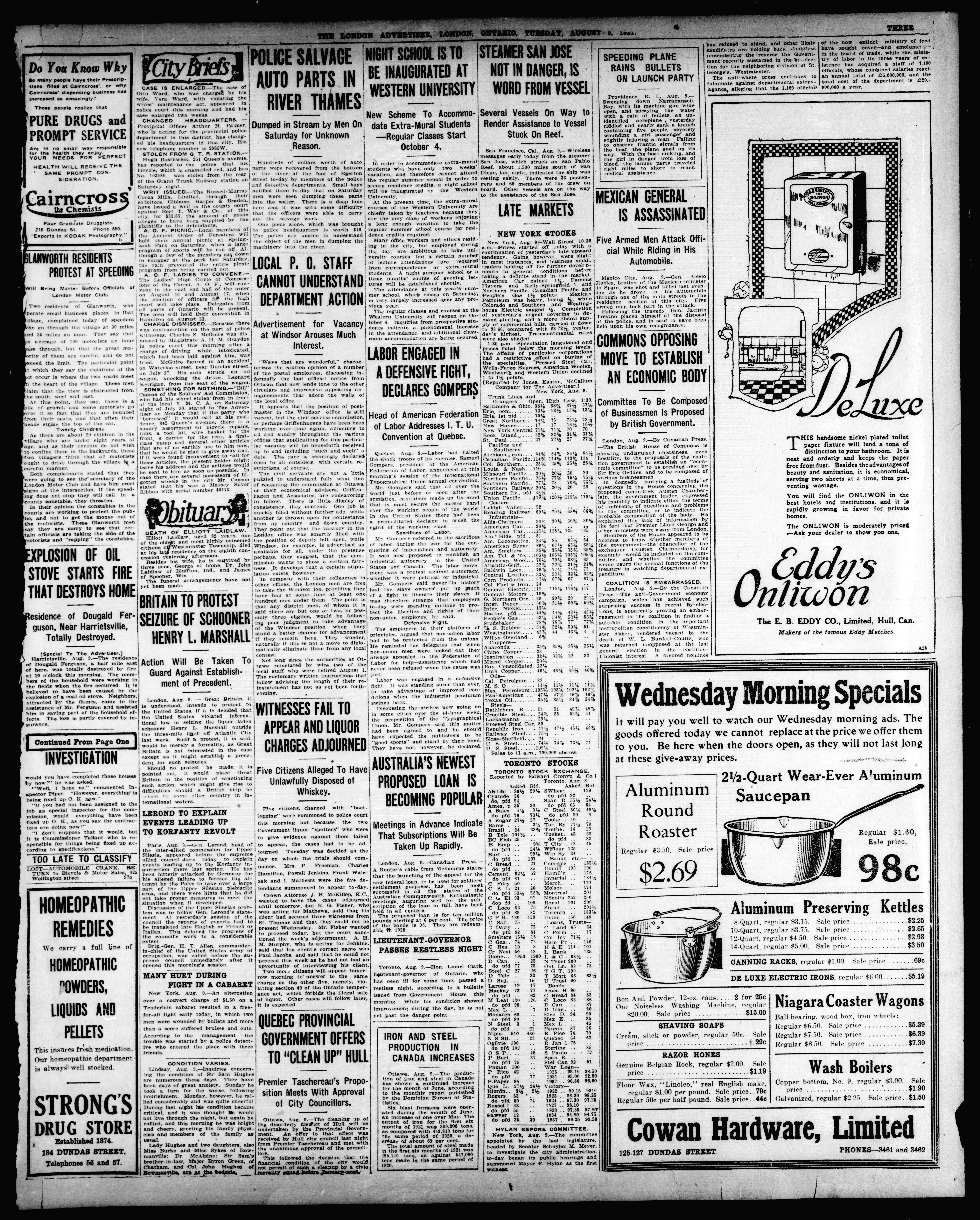 - The London Advertiser : 57th Year, No. 23097 (August 9, 1921)