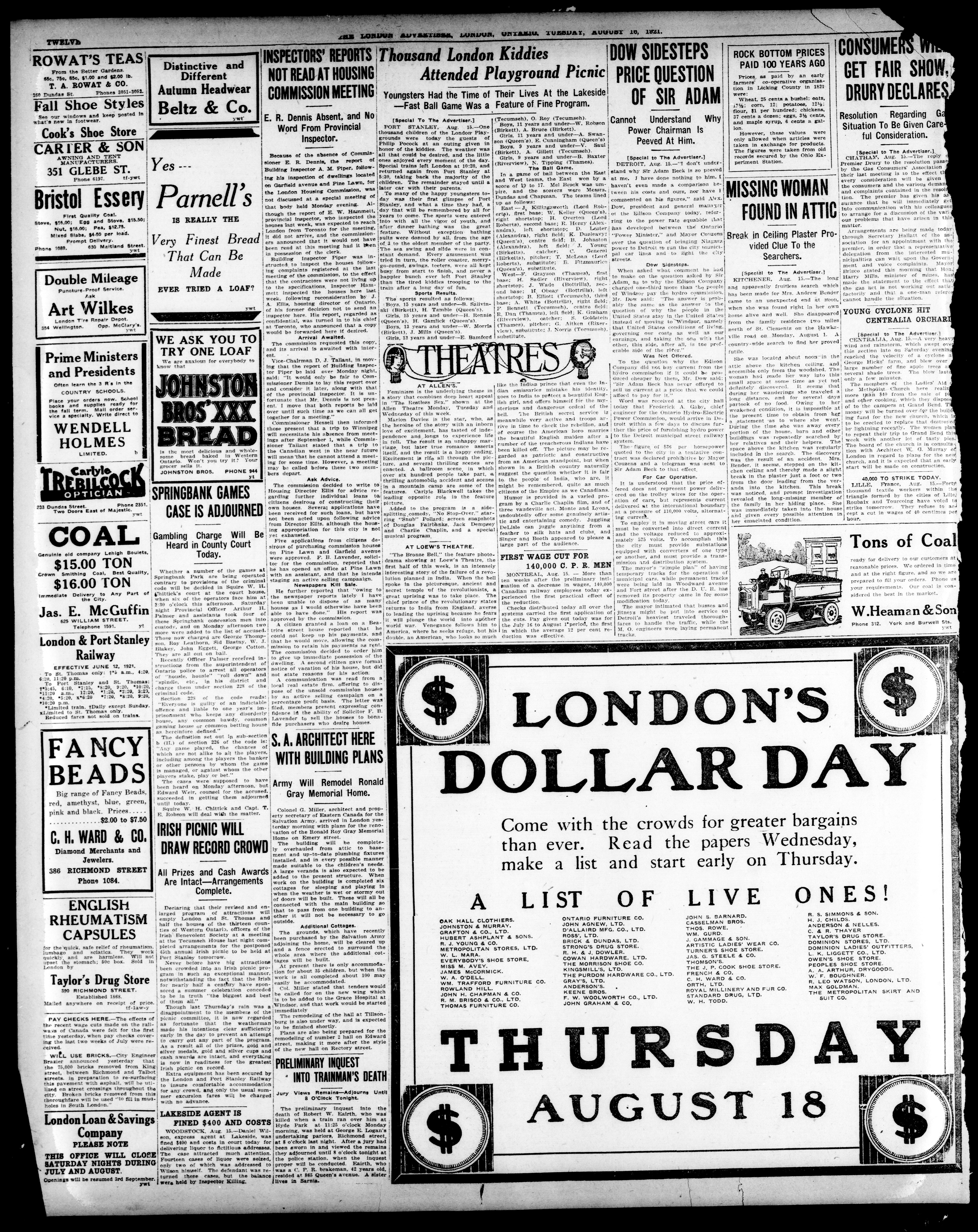 London advertiser. : The London Advertiser : 57th Year, No. 23103 (August 16, 1921)