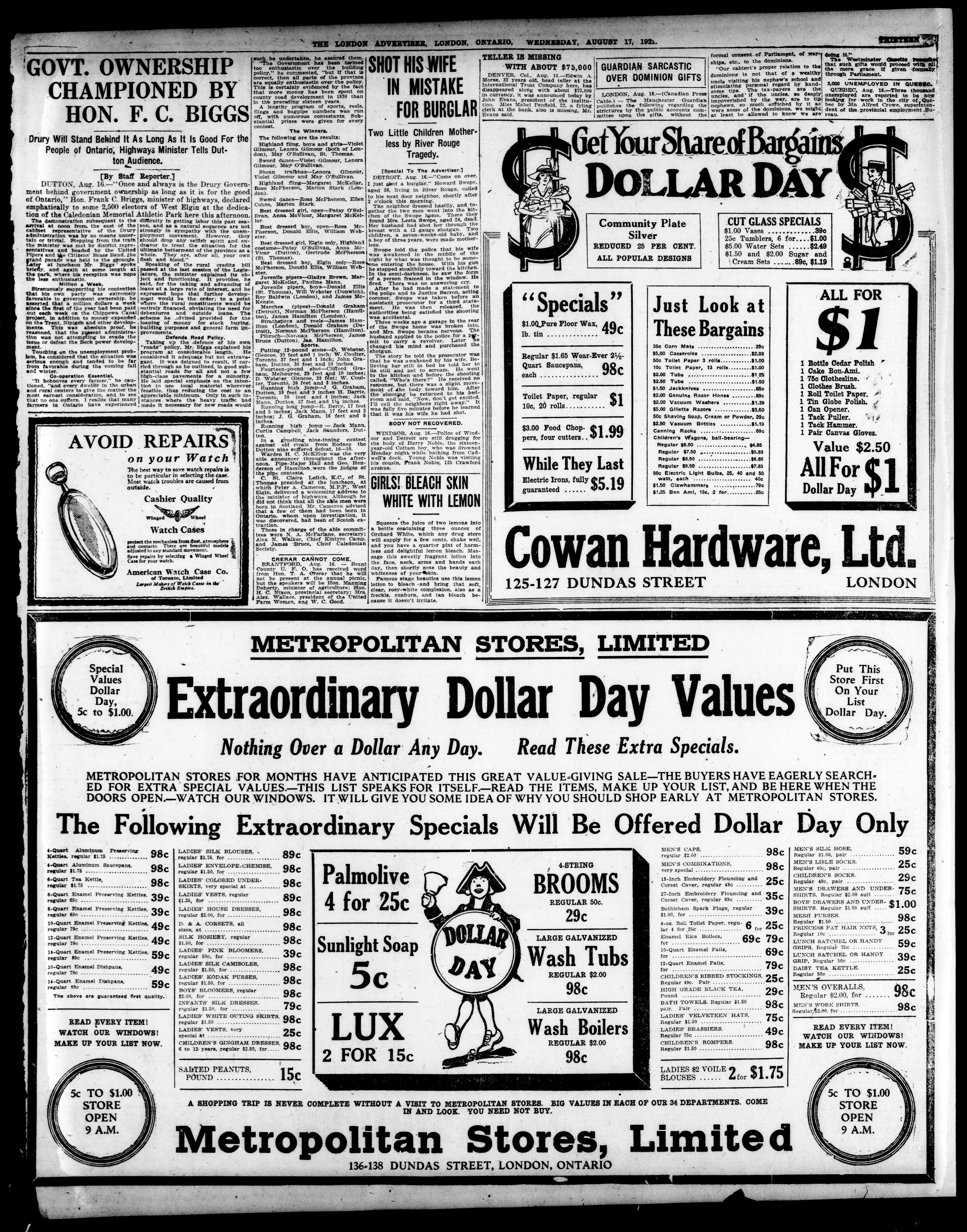 London advertiser. : The London Advertiser : 57th Year, No. 23104 (August 17, 1921)