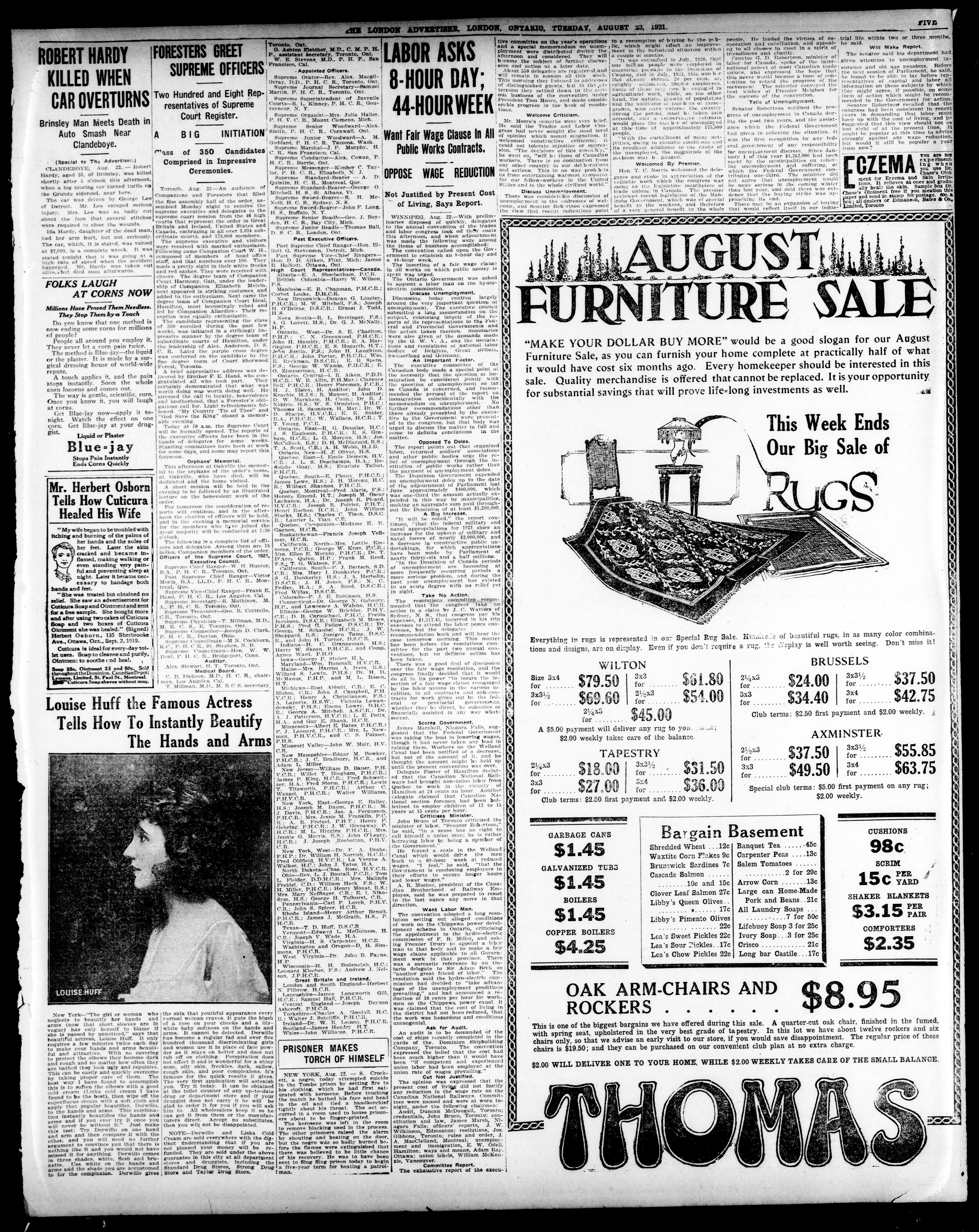 London advertiser. : The London Advertiser : 57th Year, No. 23109 (August 23, 1921)