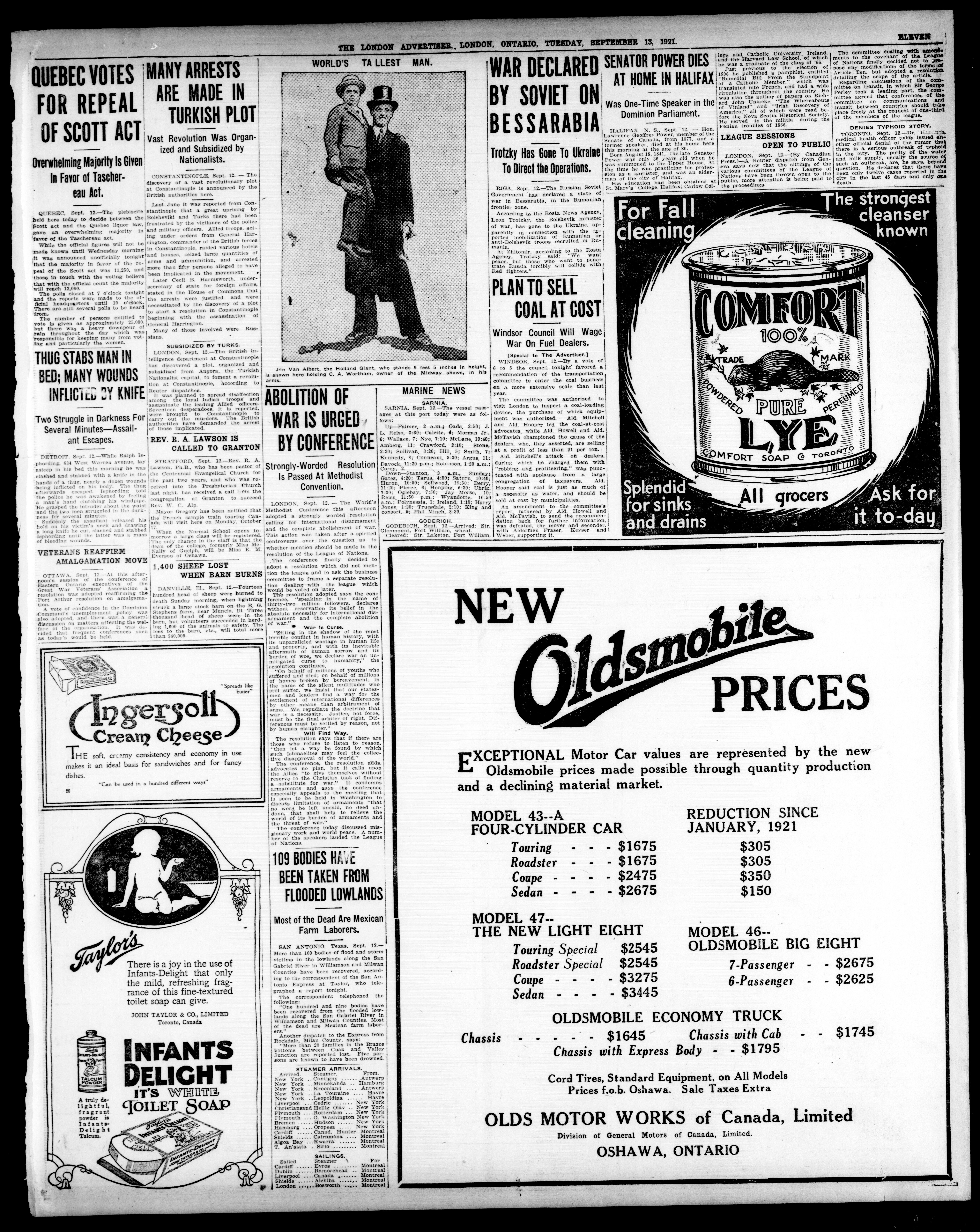 London advertiser. : The London Advertiser : 57th Year, No. 23127 (September 13, 1921)