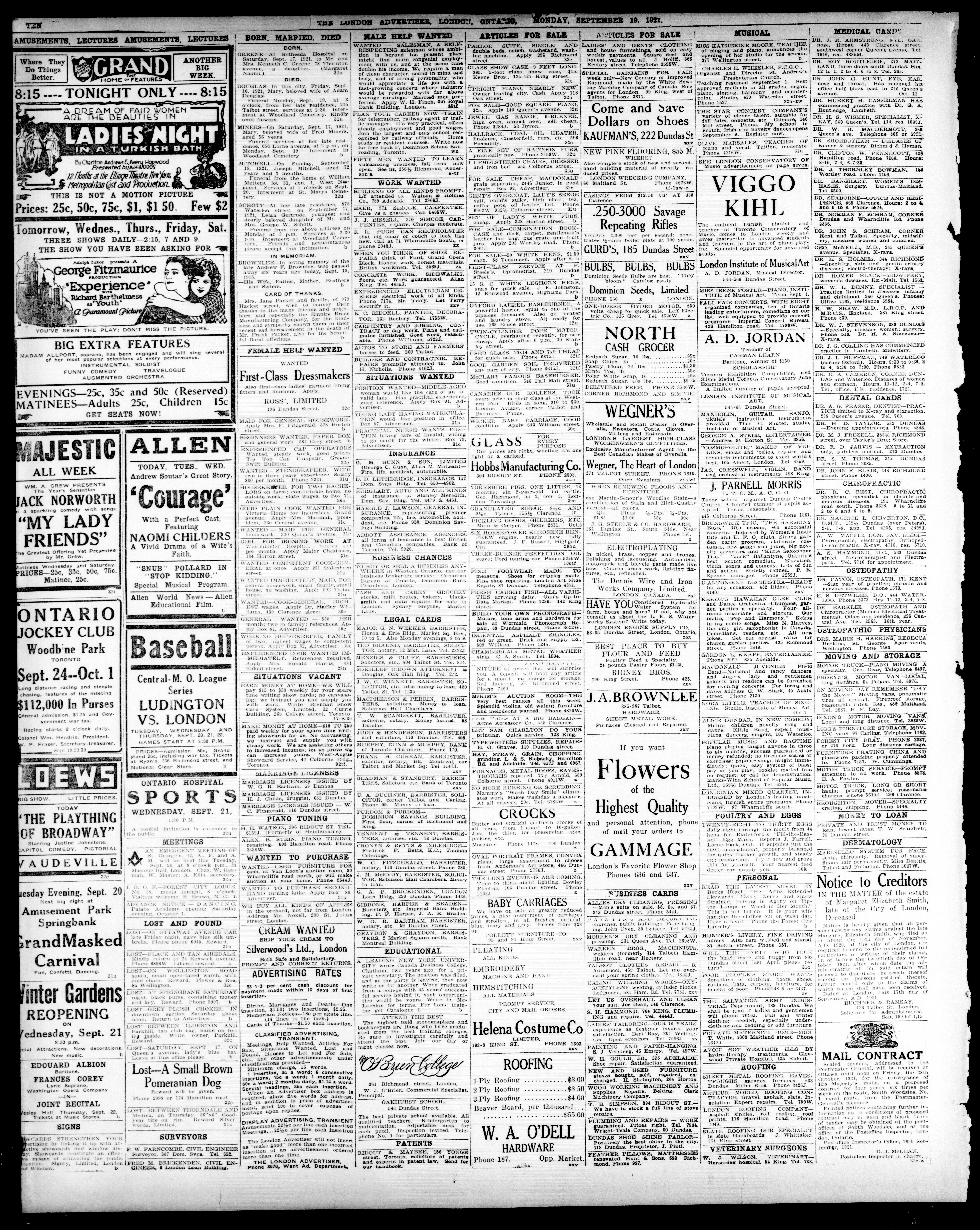 - The London Advertiser : 57th Year, No. 23132 (September 19, 1921)