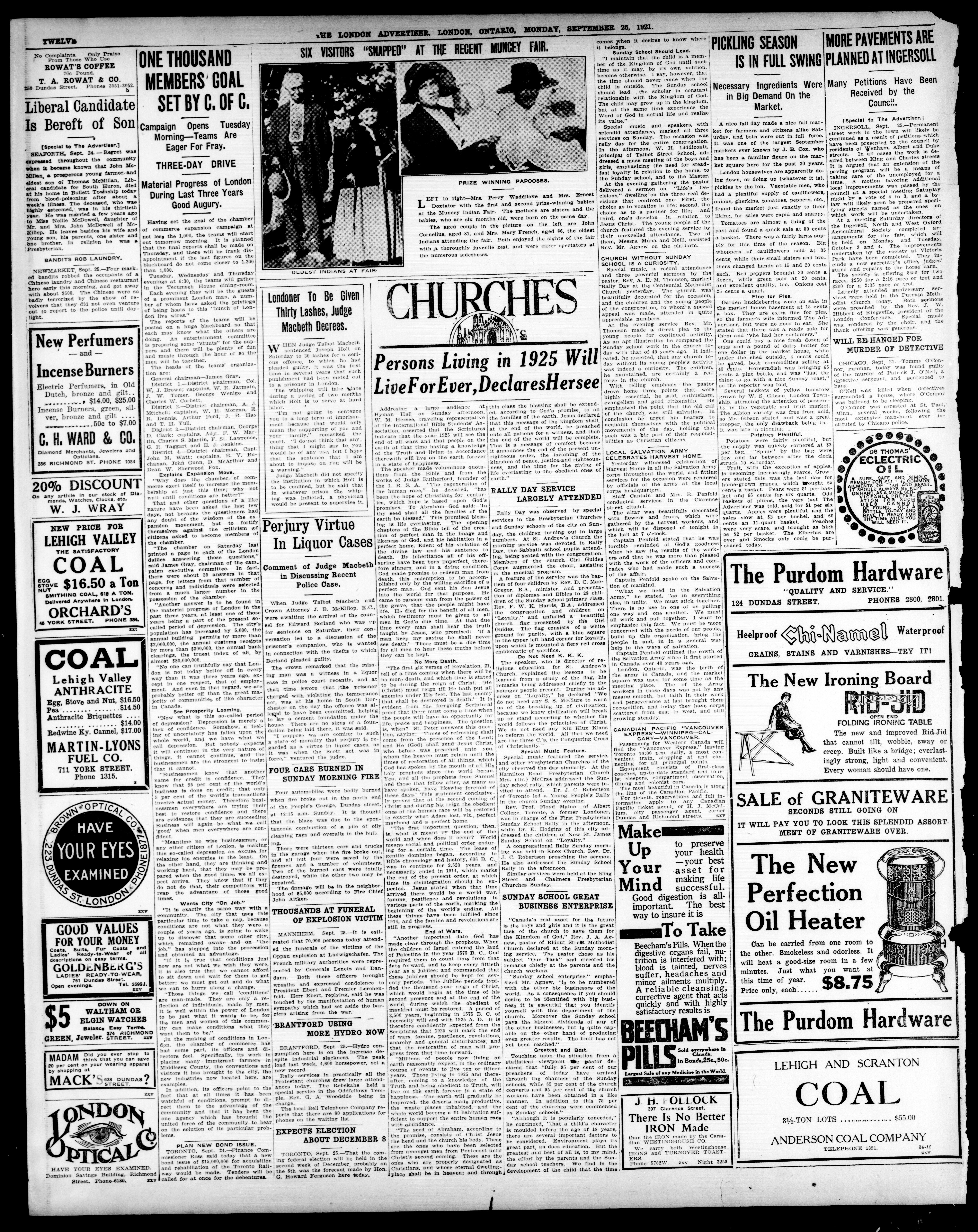London advertiser. : The London Advertiser : 57th Year, No. 23138 (September 26, 1921)