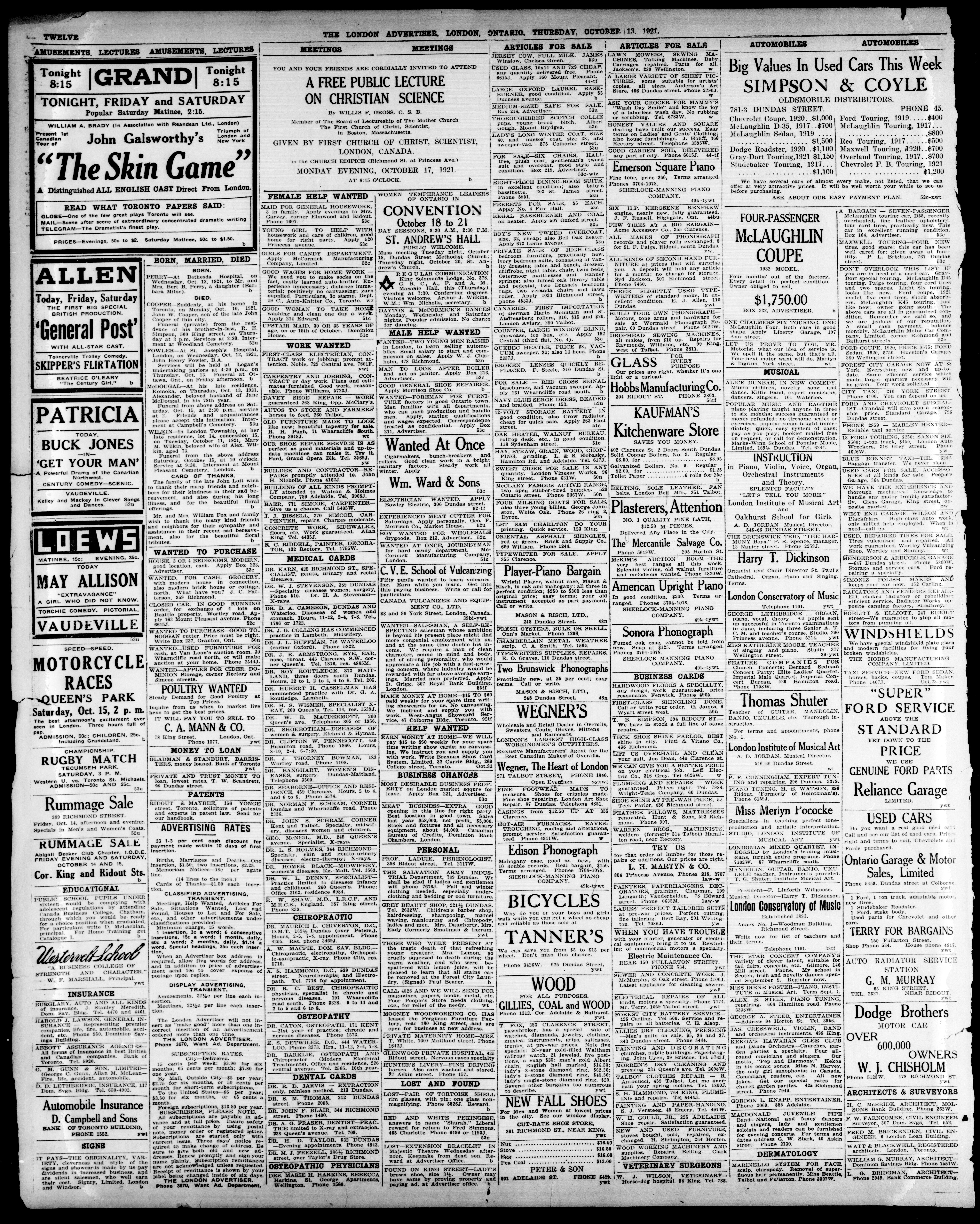 - The London Advertiser : 57th Year, No. 23153 (October 13, 1921)