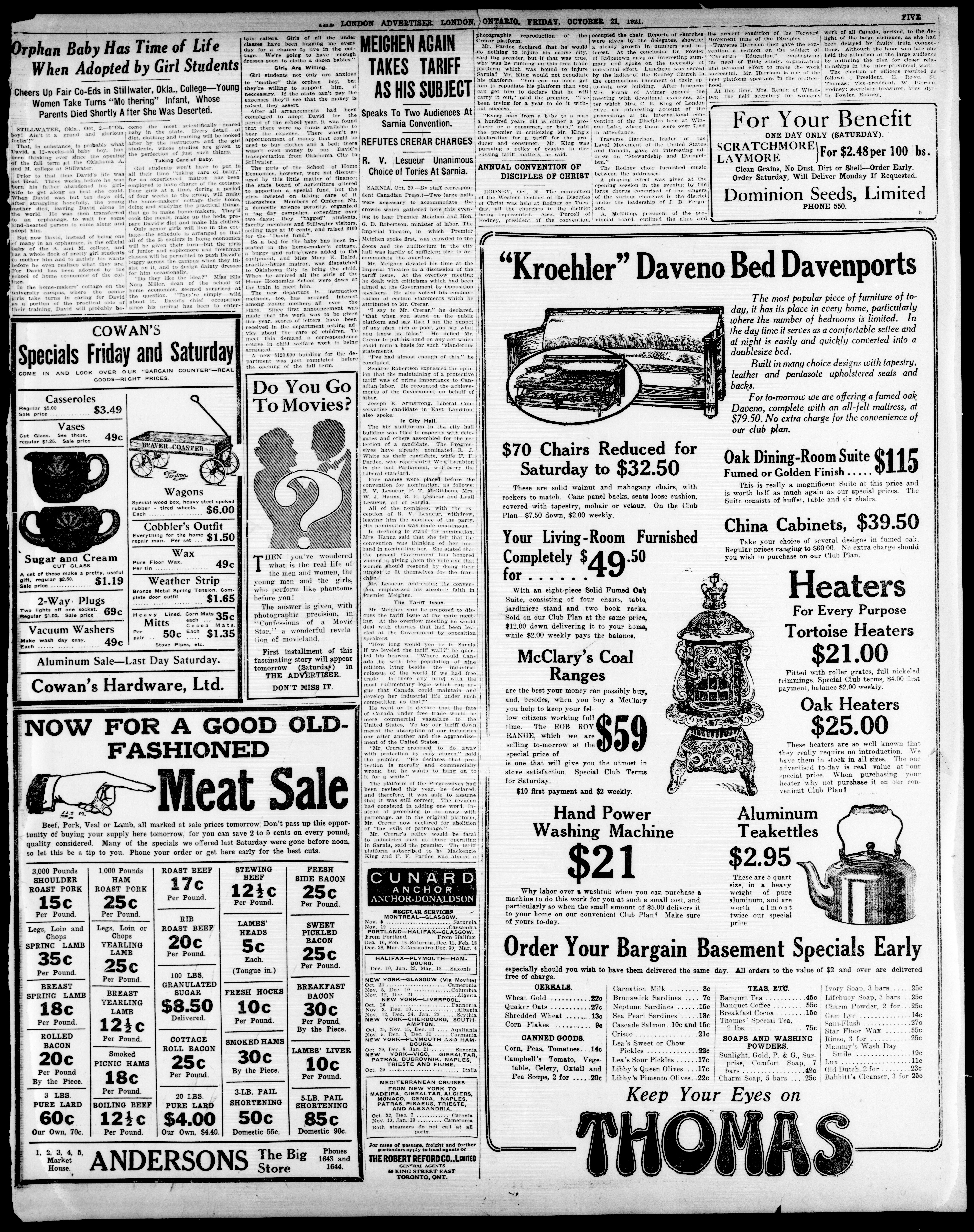 London advertiser. : The London Advertiser : 57th Year, No. 23160 (October 21, 1921)