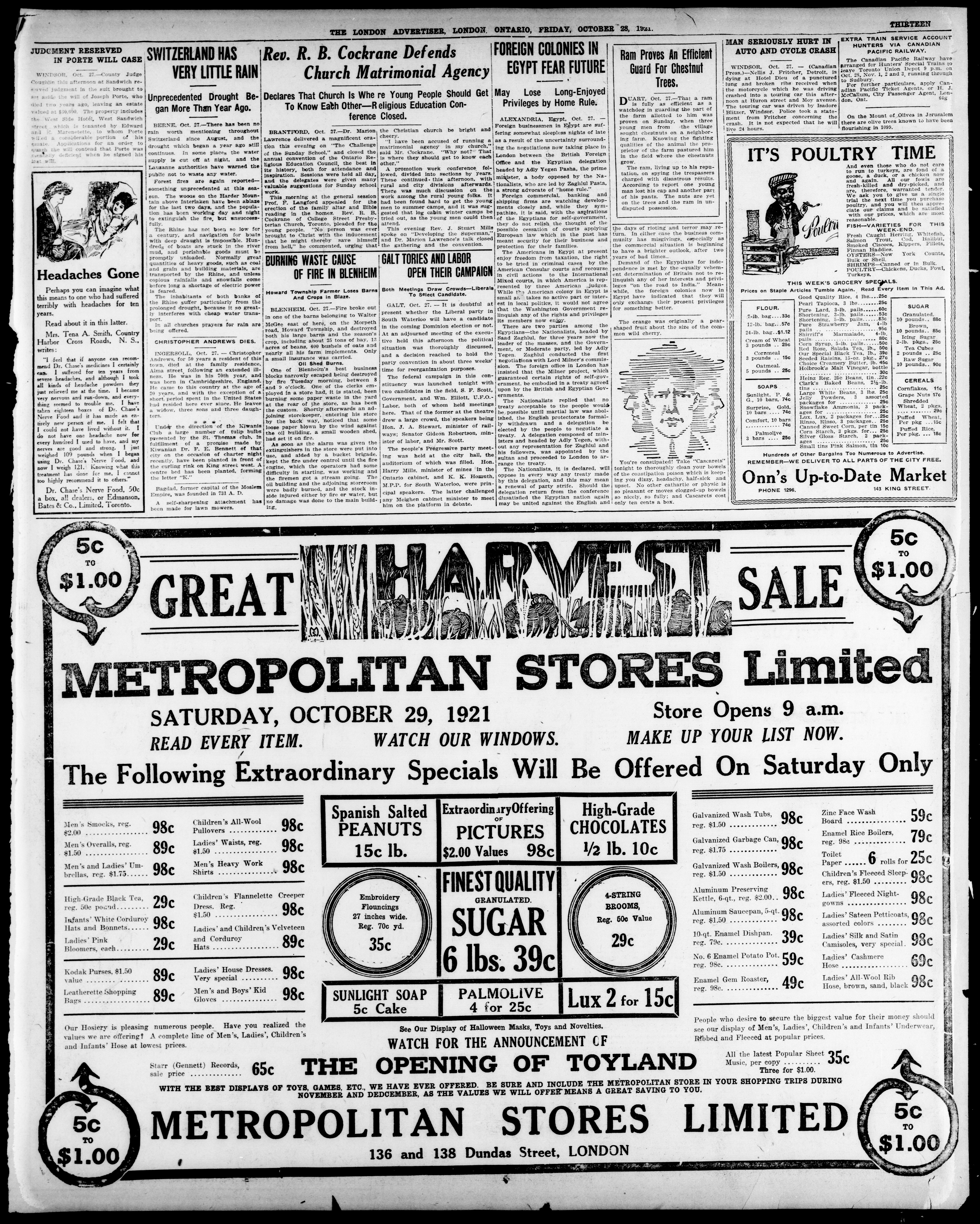 London advertiser. : The London Advertiser : 57th Year, No. 23166 (October 28, 1921)