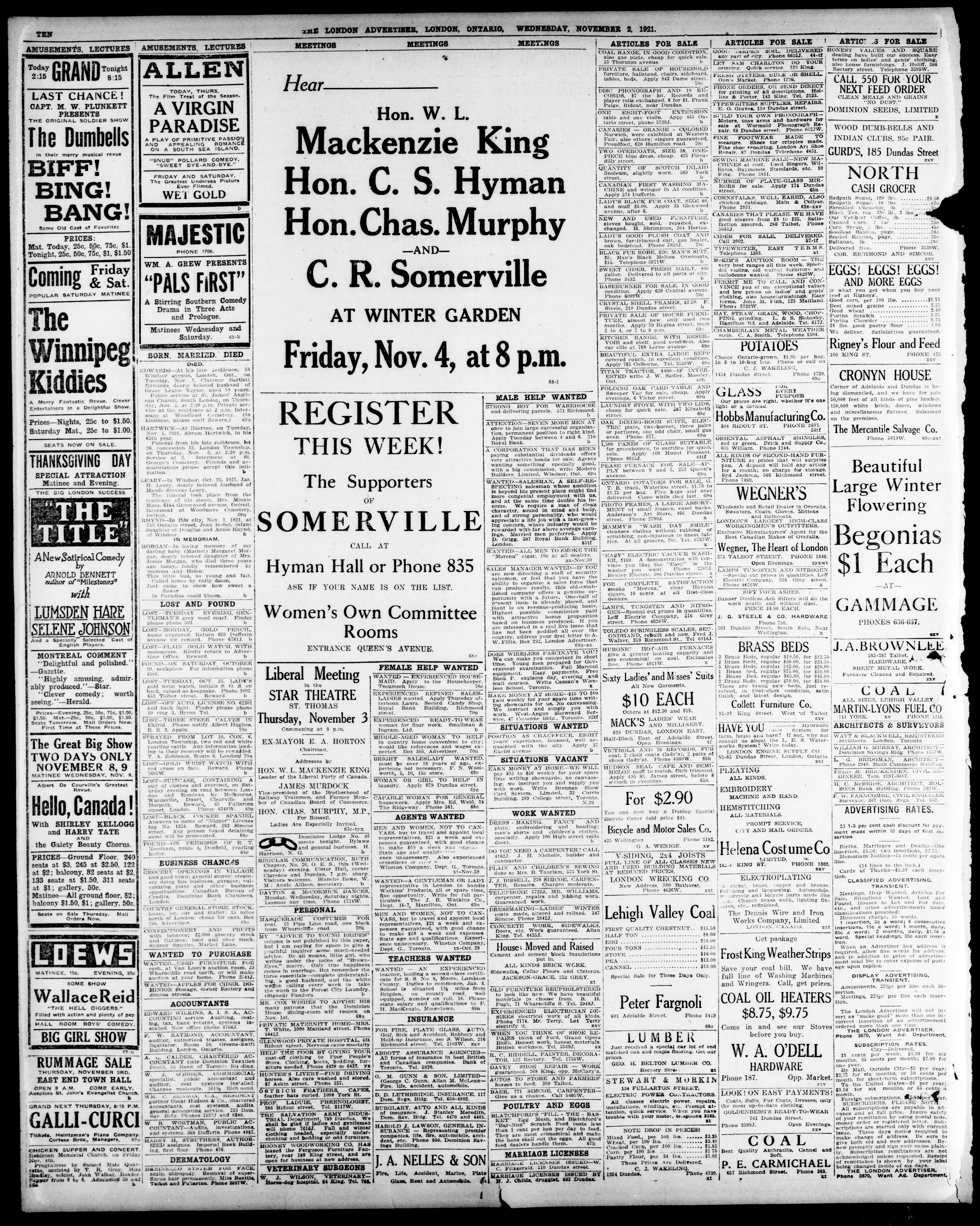 - The London Advertiser : 57th Year, No. 23170 (November 2, 1921)