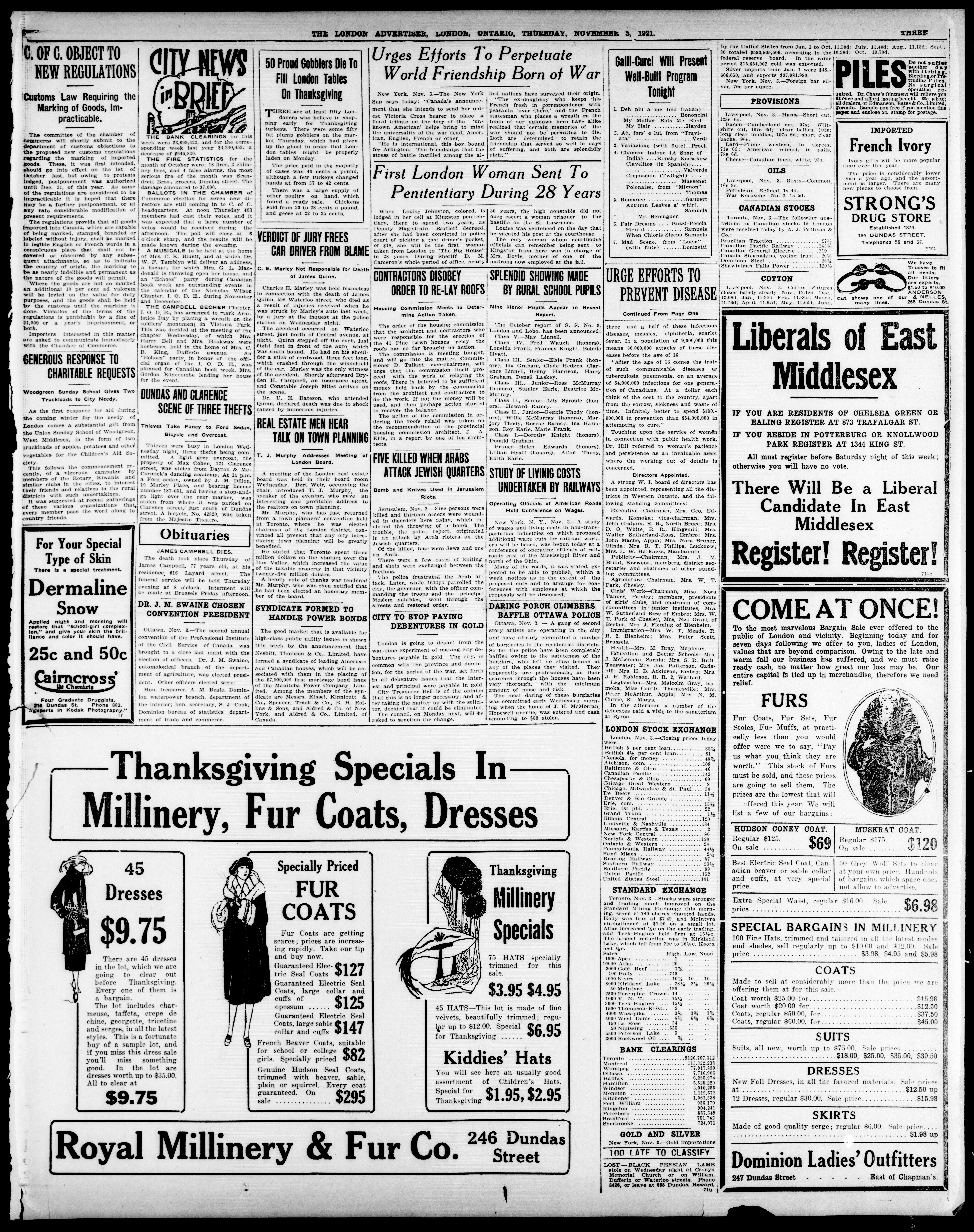 - The London Advertiser : 57th Year, No. 23171 (November 3, 1921)