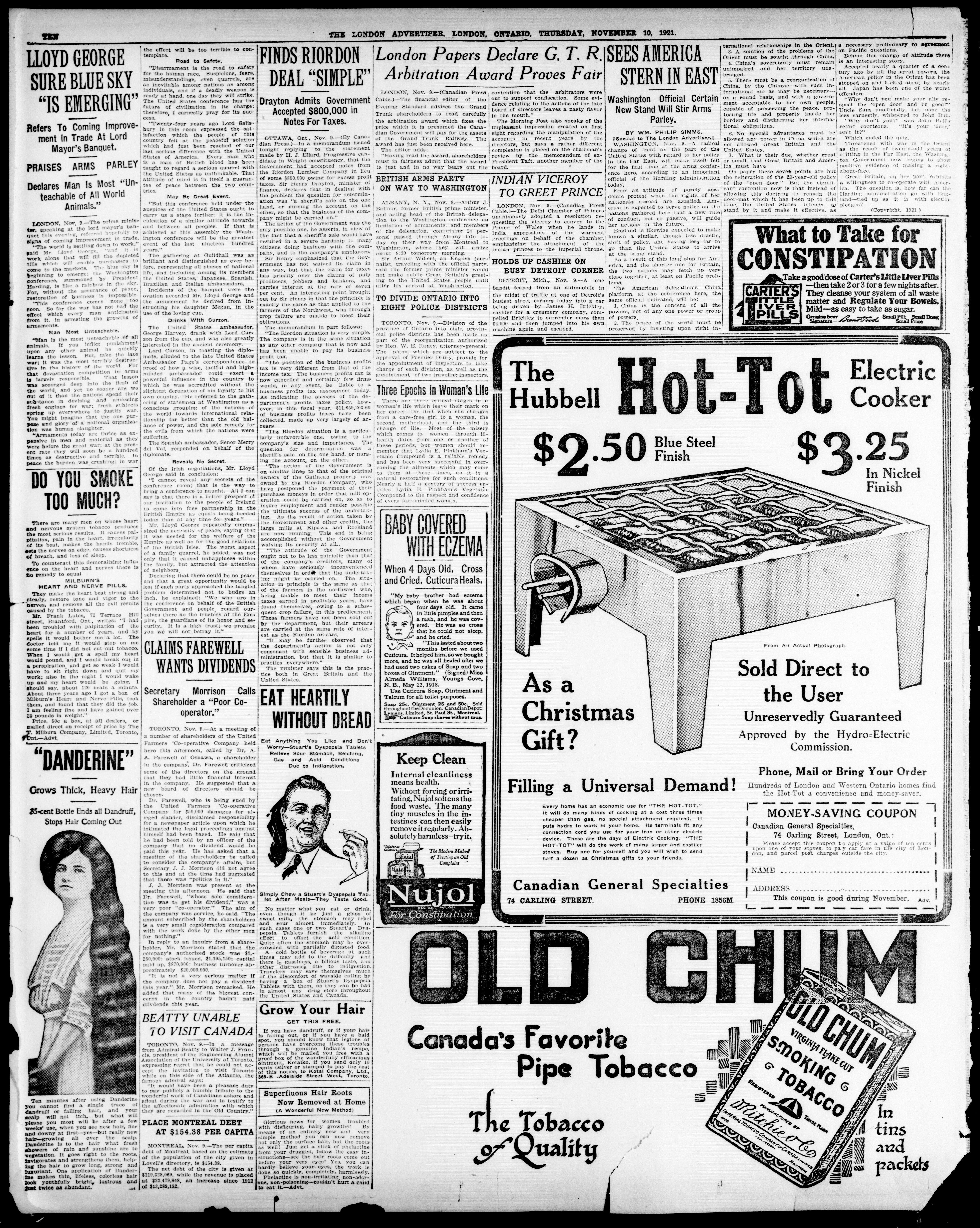 London advertiser. : The London Advertiser : 57th Year, No. 23177 (November 10, 1921)