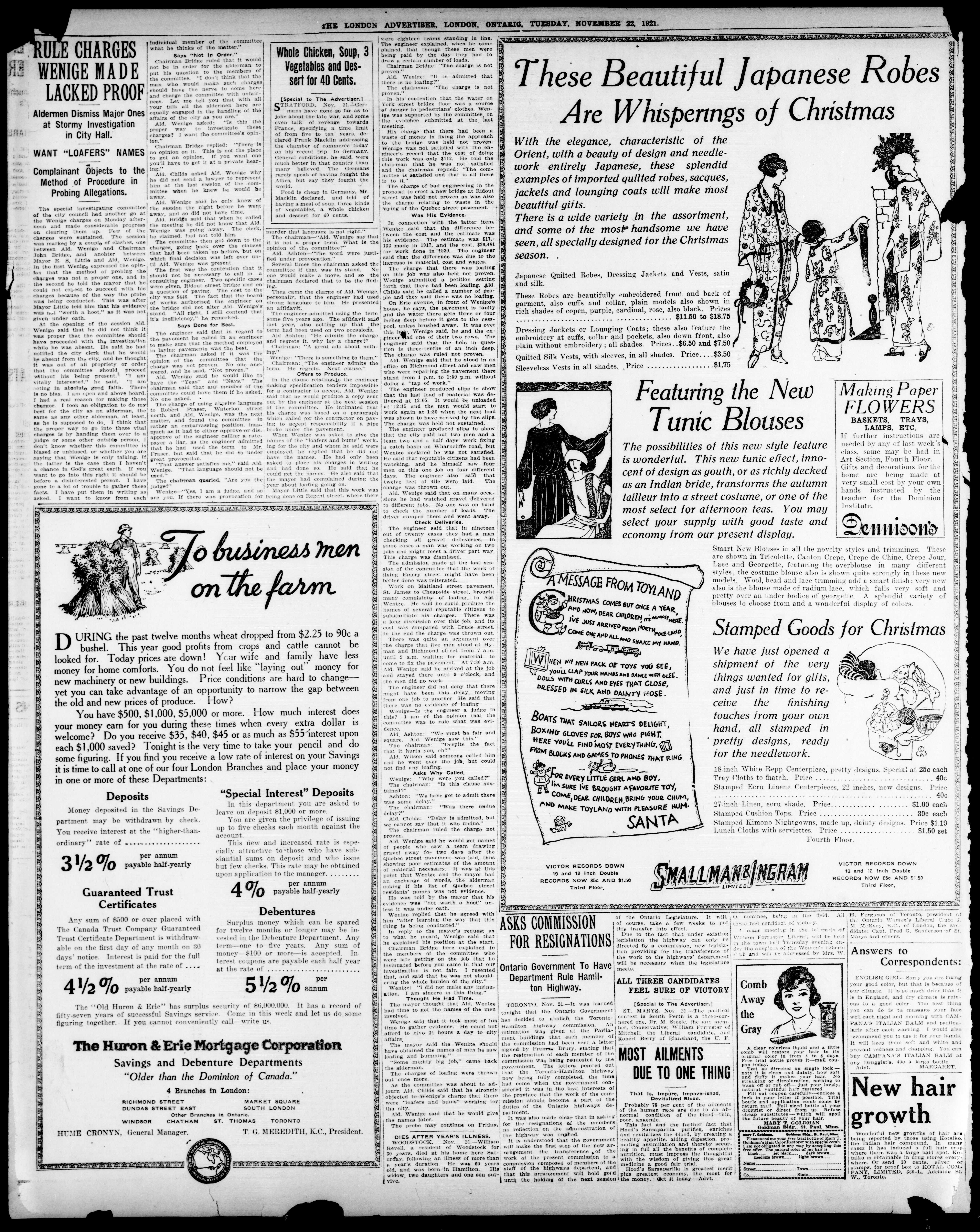 London advertiser. : The London Advertiser : 57th Year, No. 23187 (November 22, 1921)