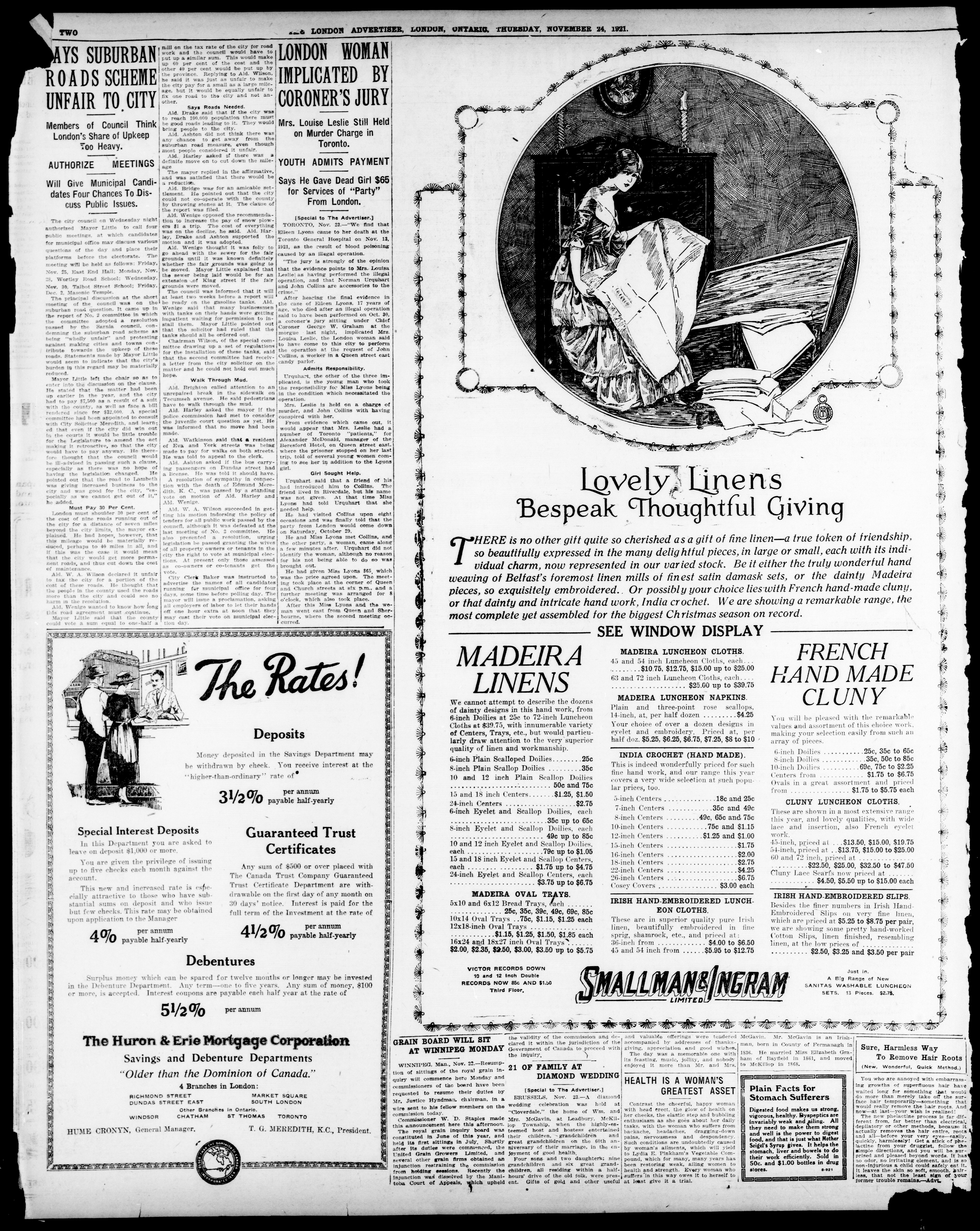 London advertiser. : The London Advertiser : 57th Year, No. 23189 (November 24, 1921)