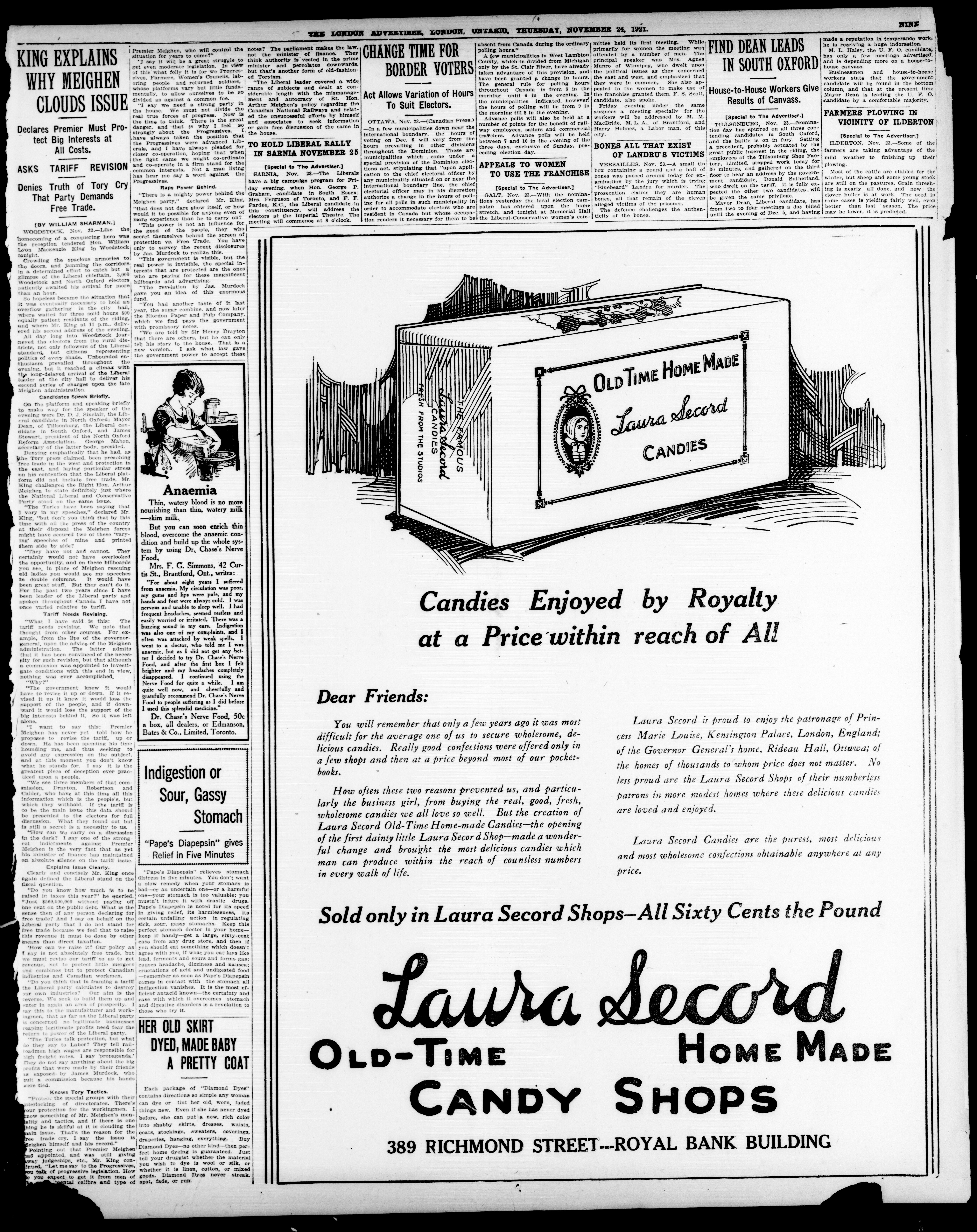 London advertiser. : The London Advertiser : 57th Year, No. 23189 (November 24, 1921)