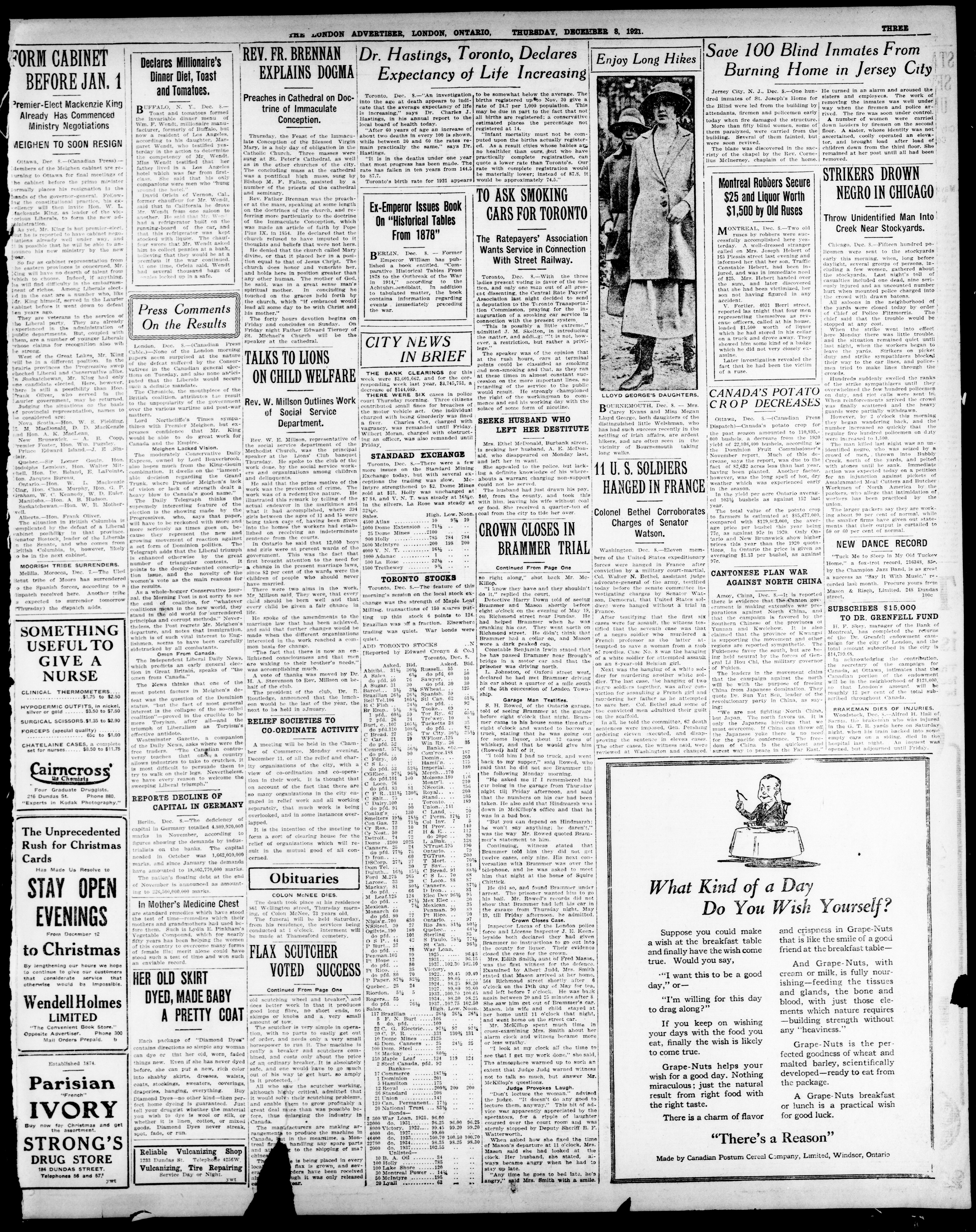 London advertiser. : The London Advertiser : 57th Year, No. 23201 (December 8, 1921)