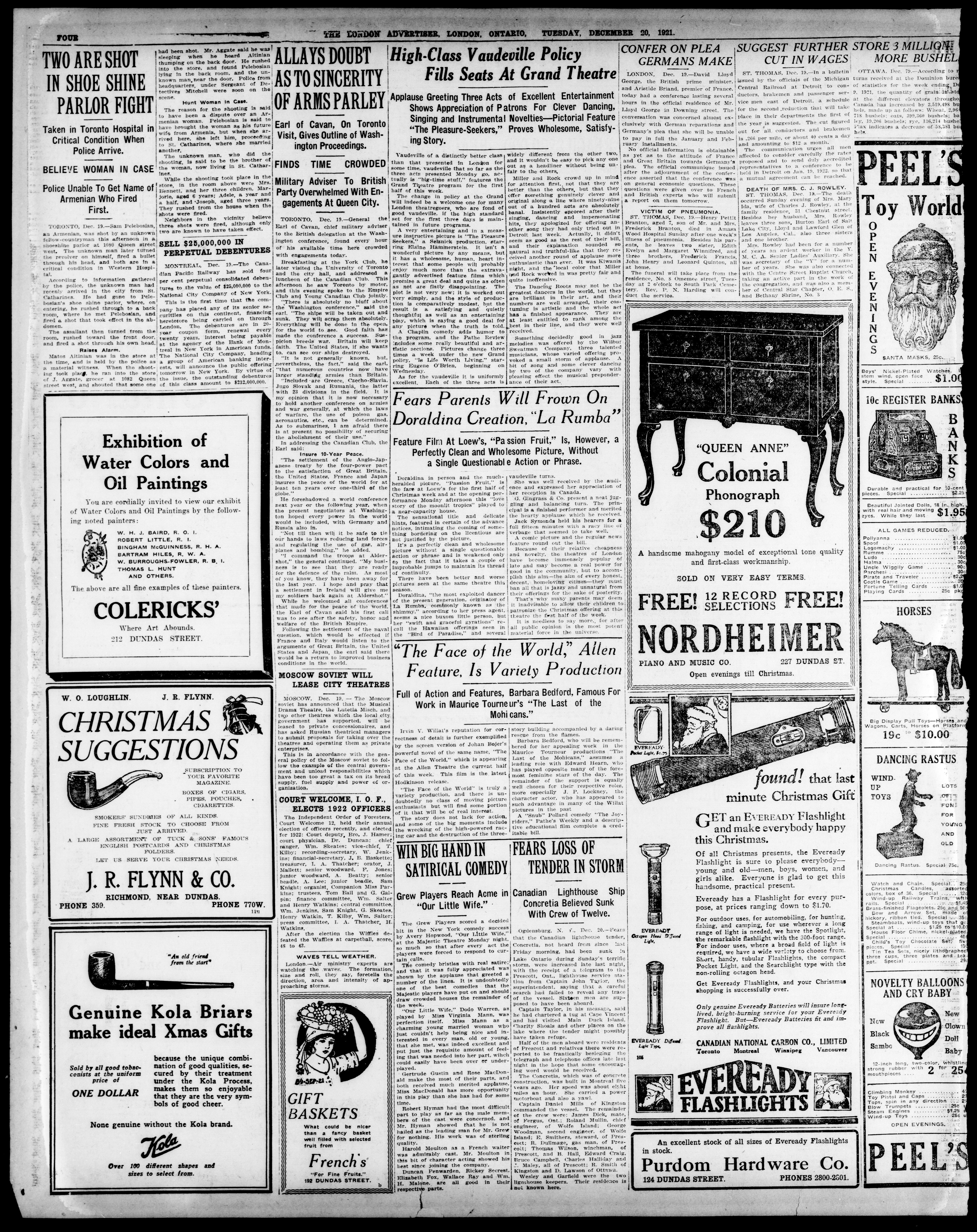 London advertiser. : The London Advertiser : 57th Year, No. 23211 (December 20, 1921)