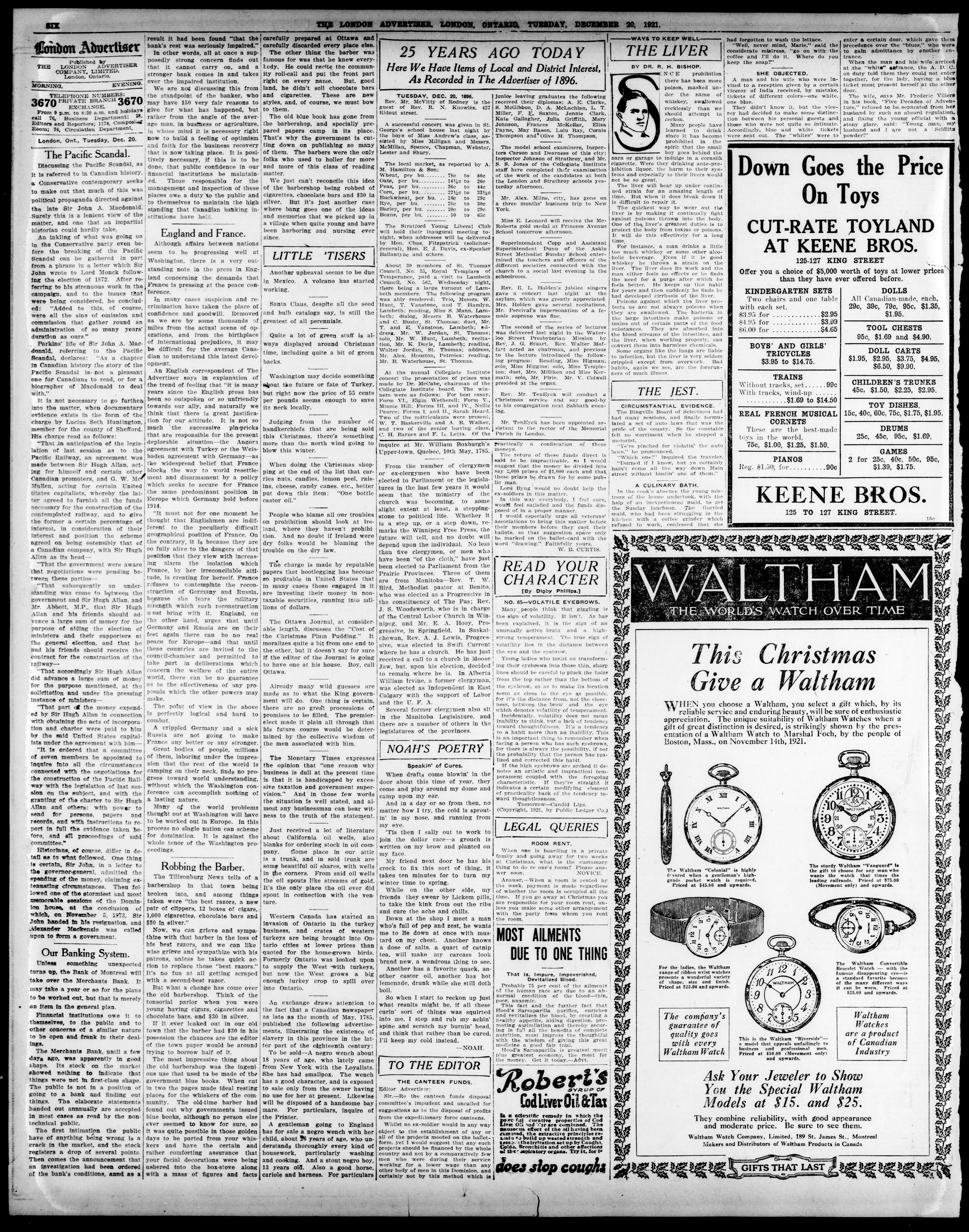 - The London Advertiser : 57th Year, No. 23211 (December 20, 1921)