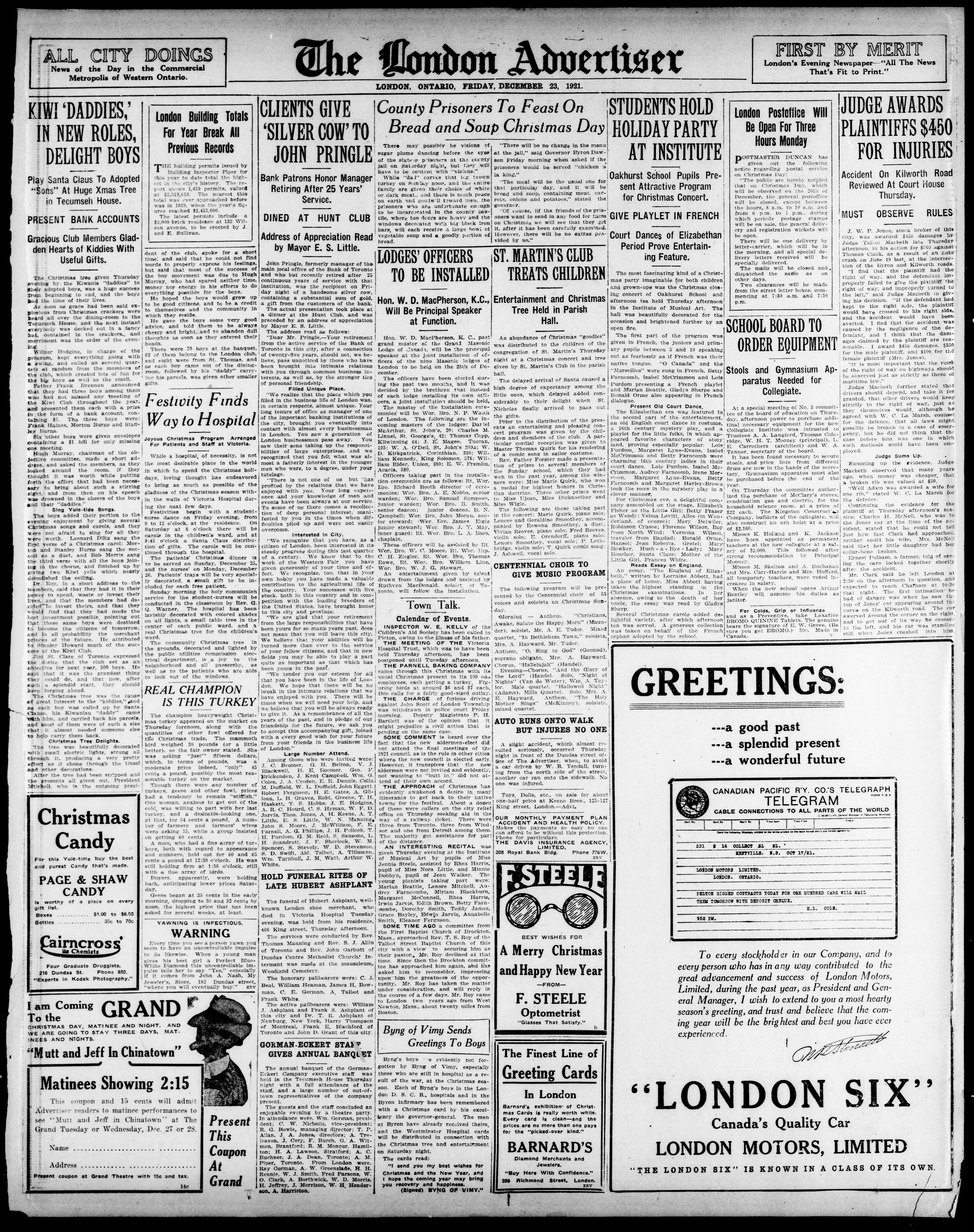 London advertiser. : The London Advertiser : 57th Year, No. 23214 (December 23, 1921)