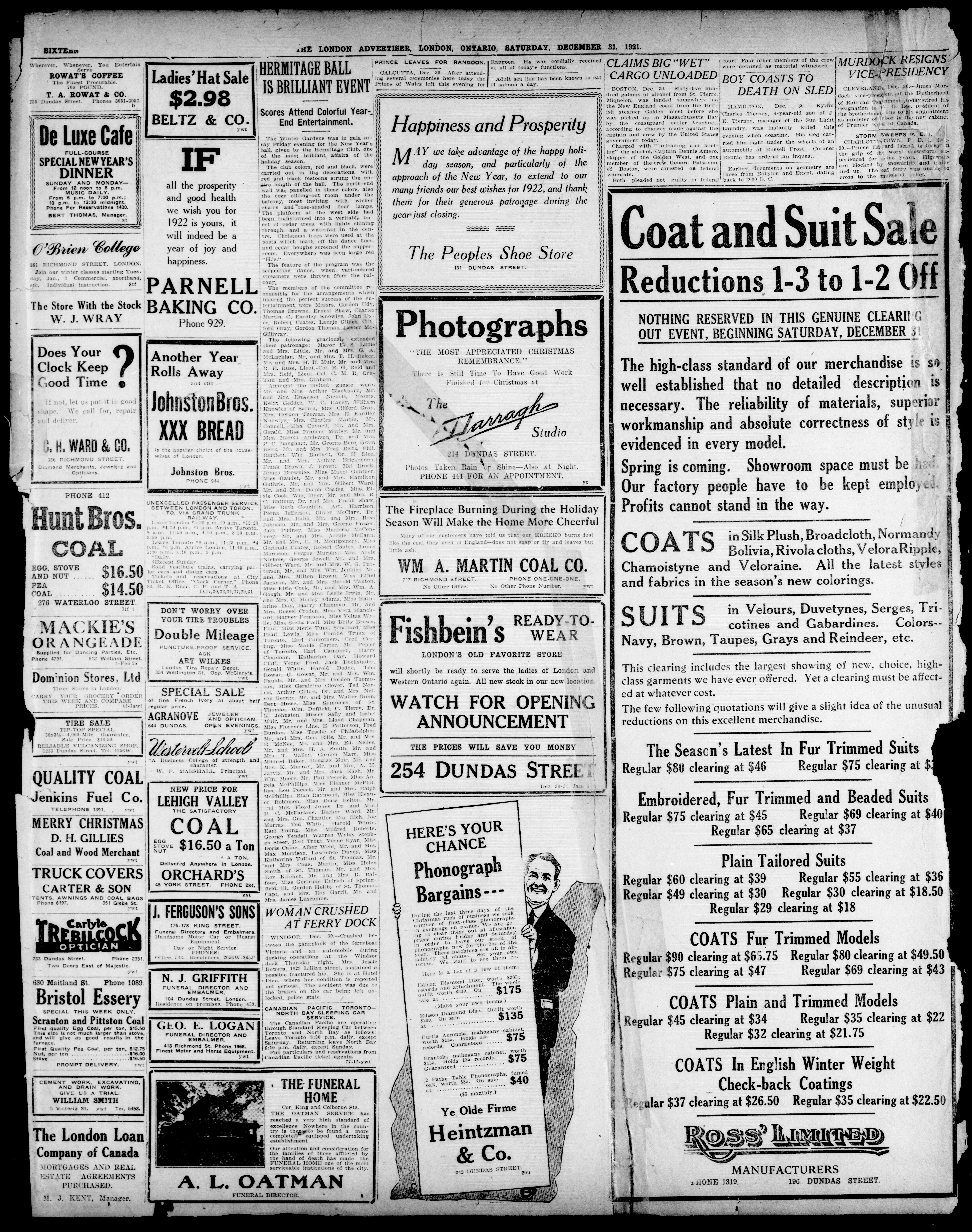 - The London Advertiser : 57th Year, No. 23221 (December 31, 1921)