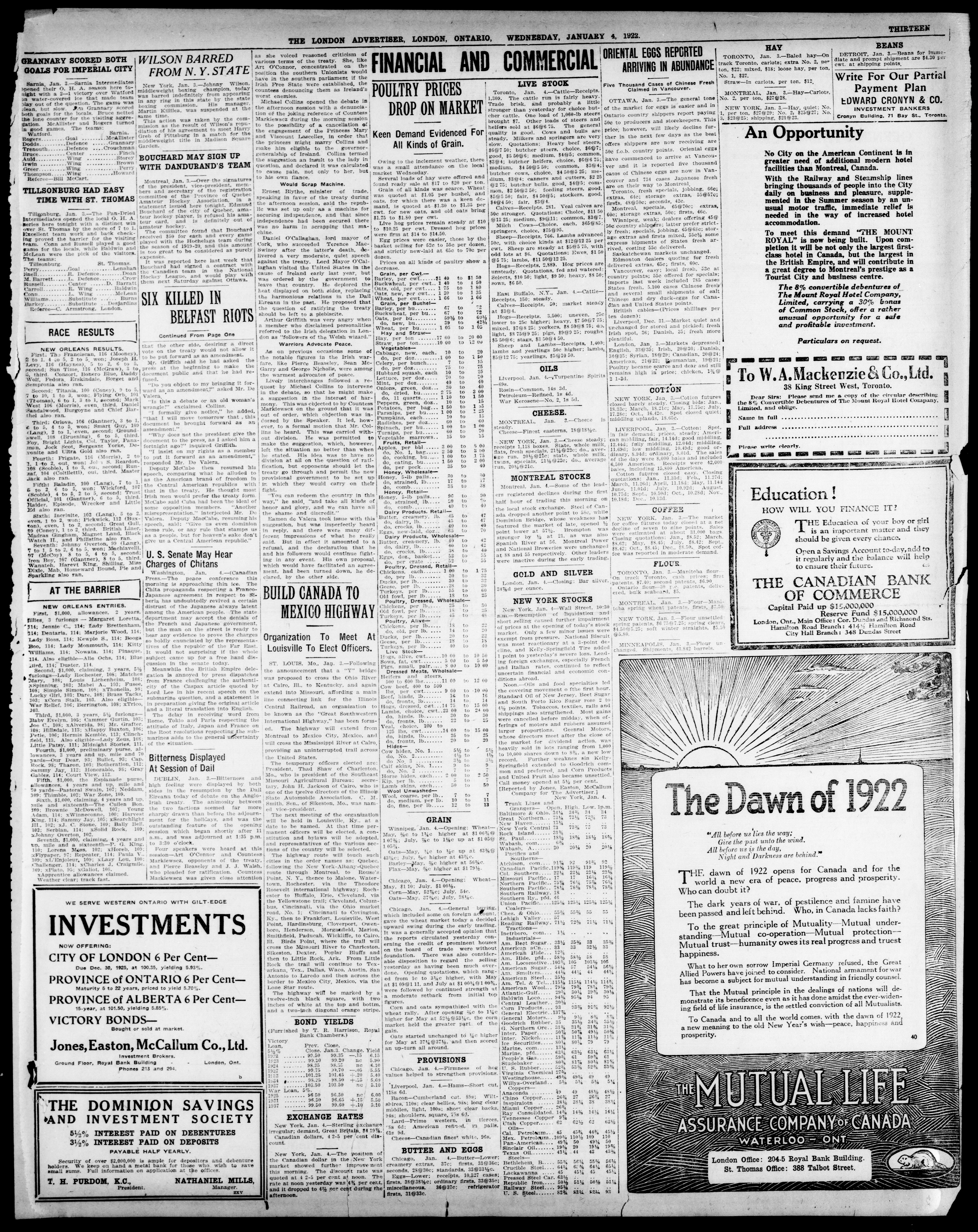 London advertiser. : The London Advertiser : 57th Year, No. 23224 (January 4, 1922)