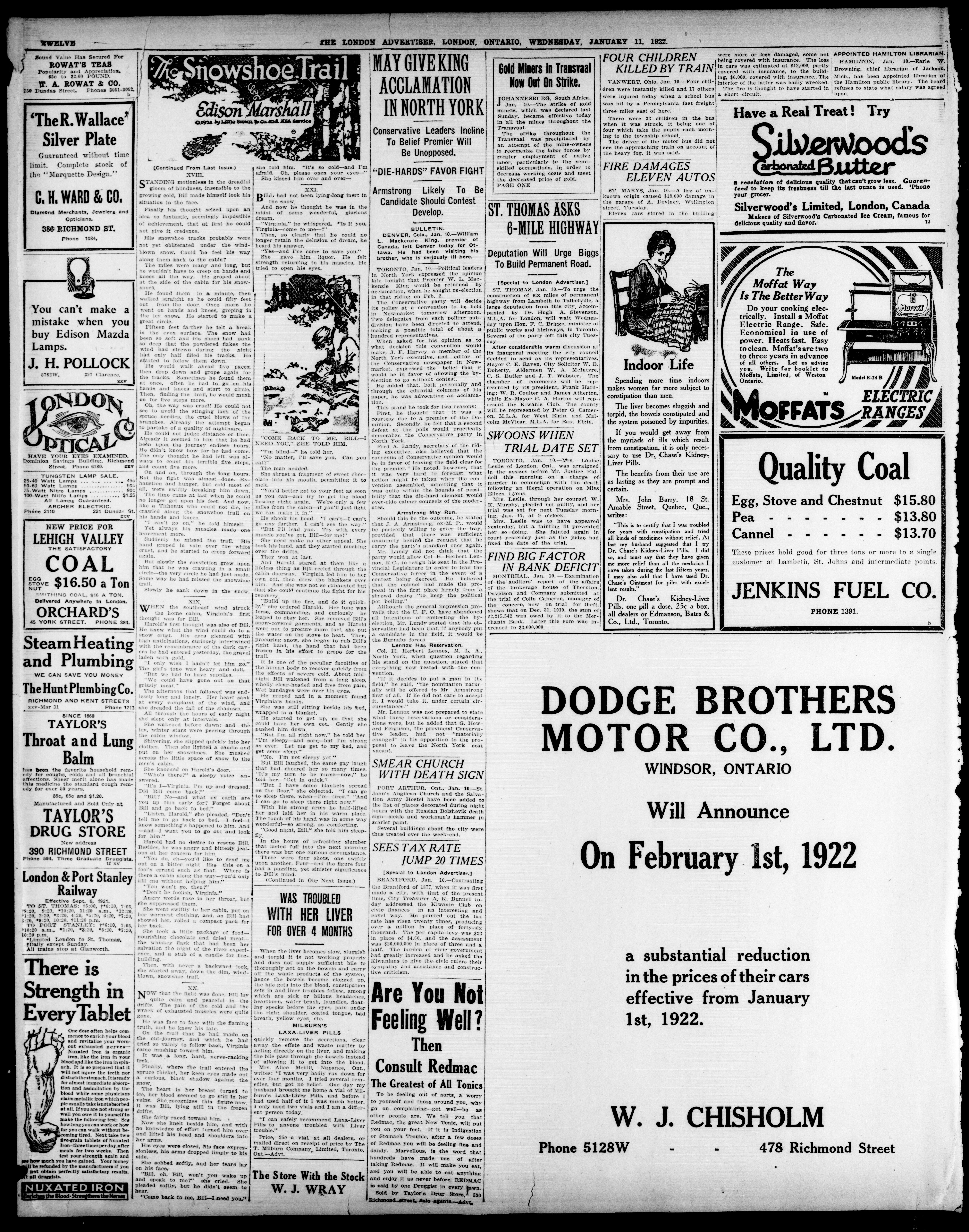 - The London Advertiser : 57th Year, No. 23230 (January 11, 1922)