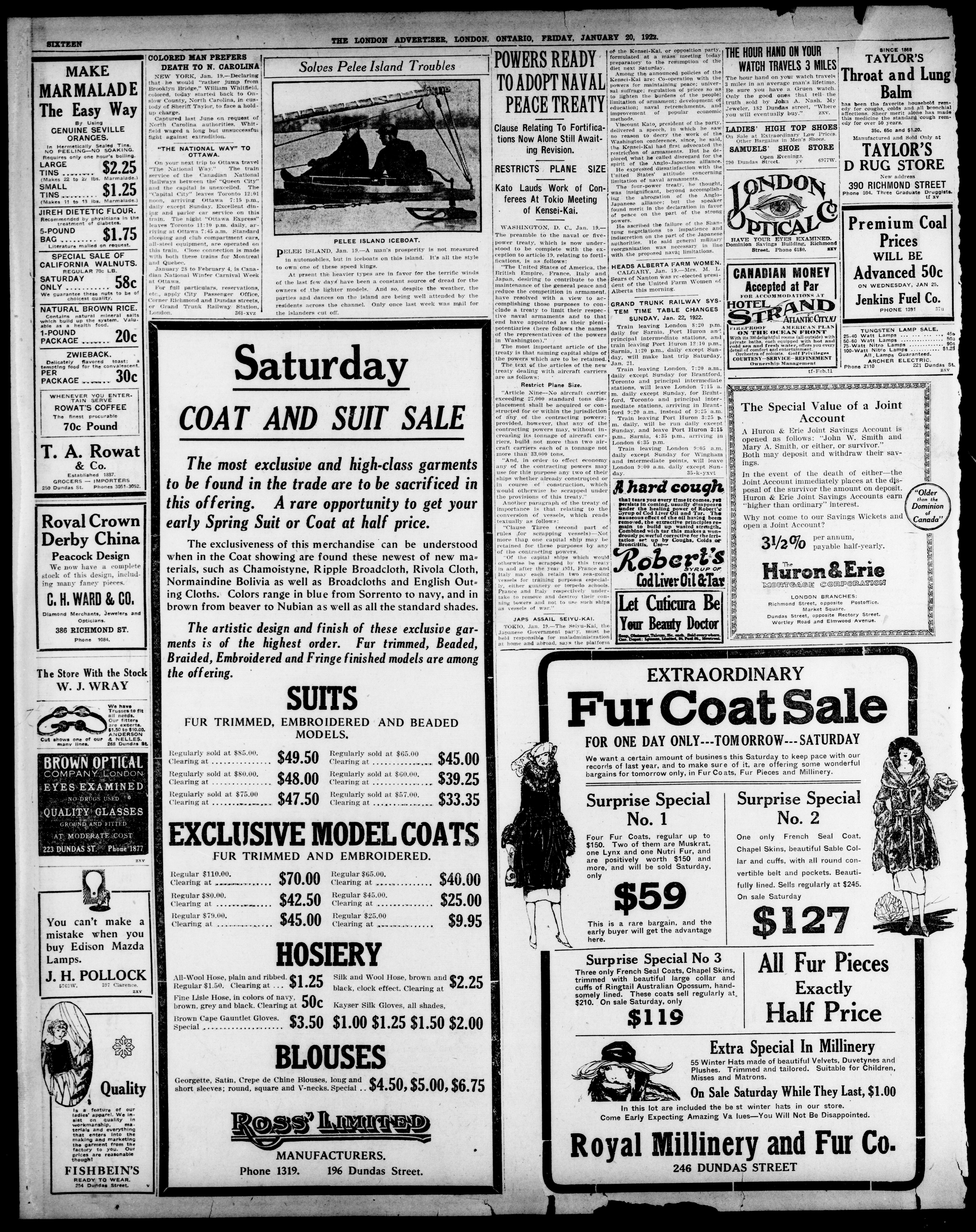 London advertiser. : The London Advertiser : 57th Year, No. 23238 (January 20, 1922)