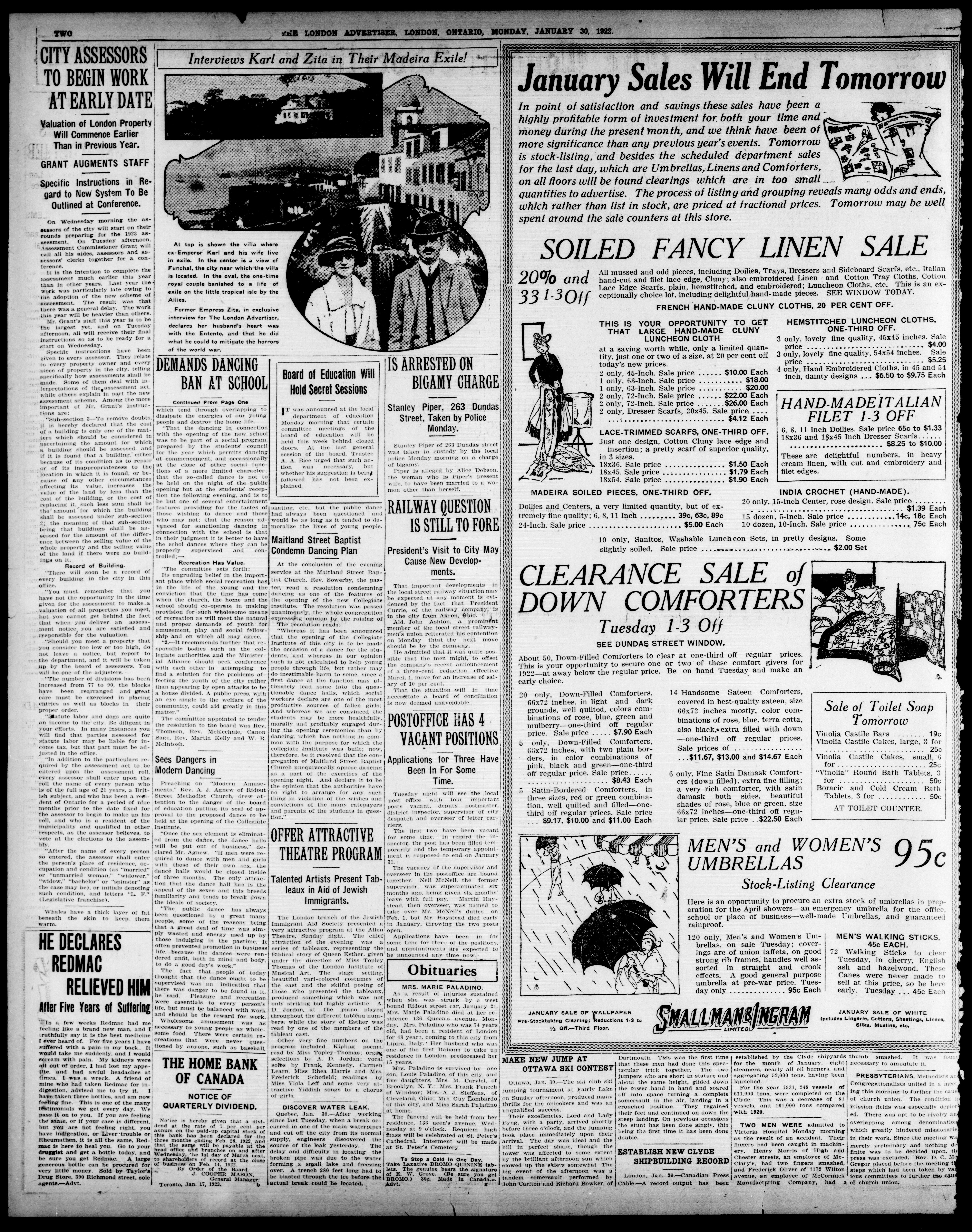 London advertiser. : The London Advertiser : 57th Year, No. 23246 (January 30, 1922)
