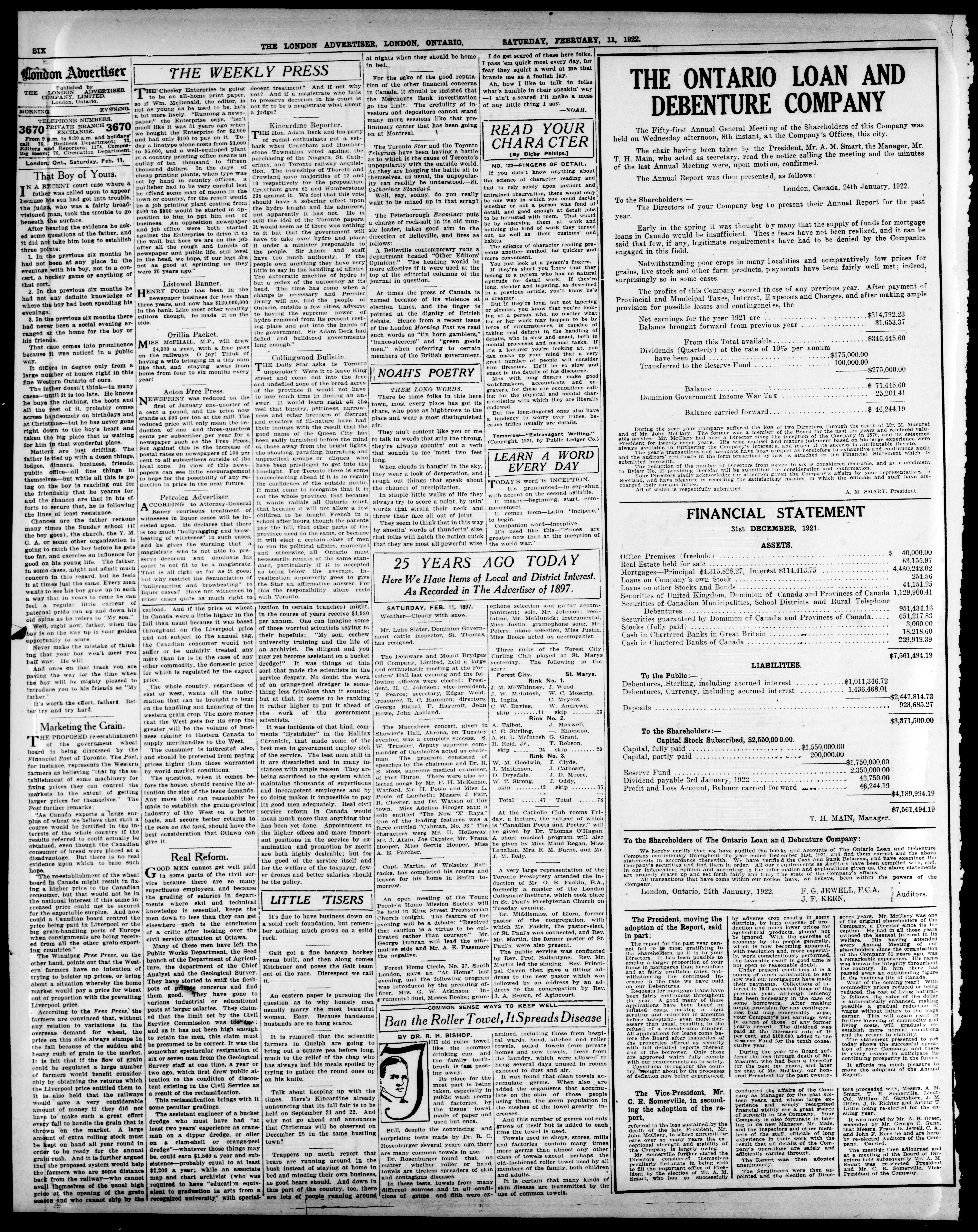 - The London Advertiser : 57th Year, No. 23257 (February 11, 1922)