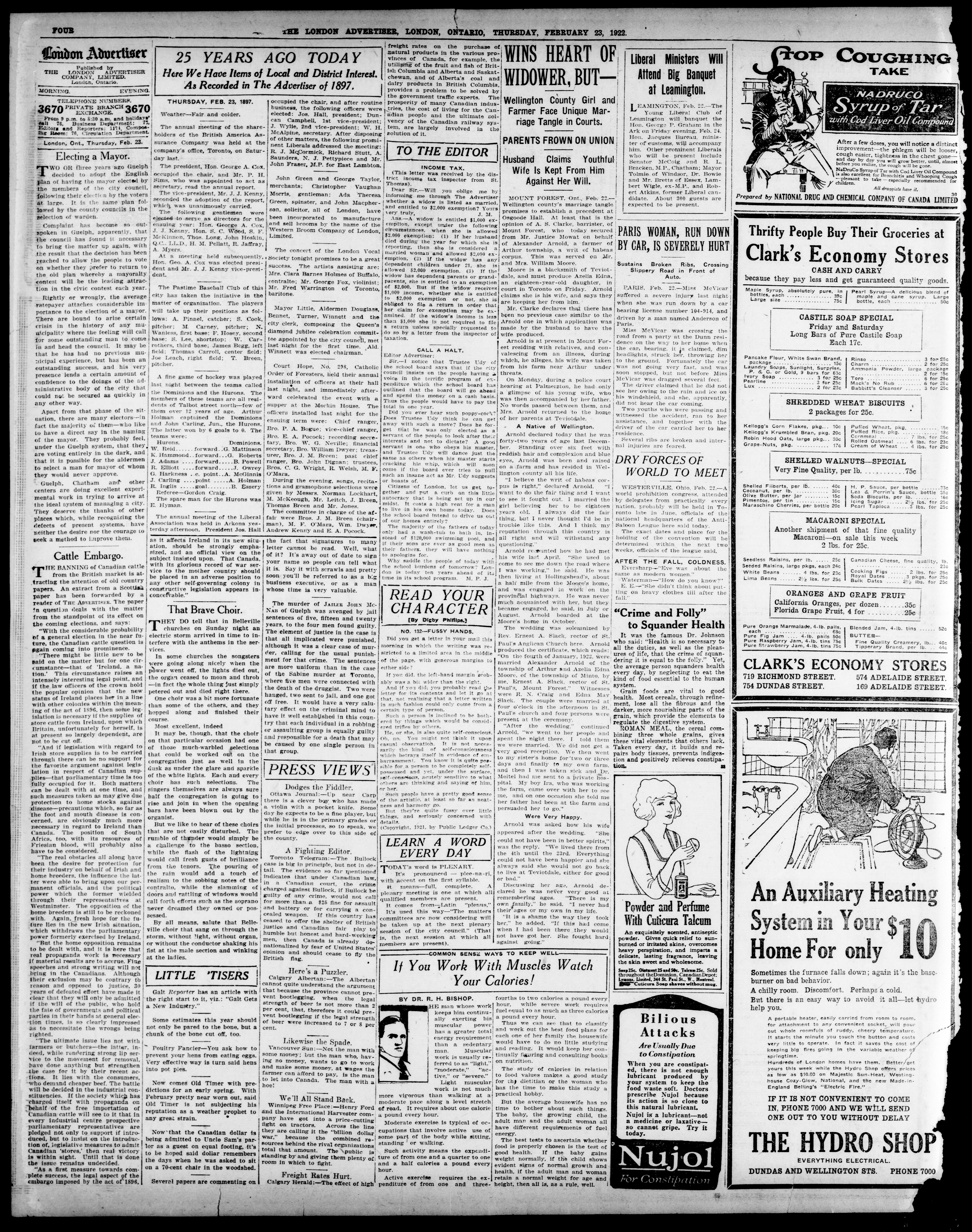 London advertiser. : The London Advertiser : 57th Year, No. 23267 (February 23, 1922)