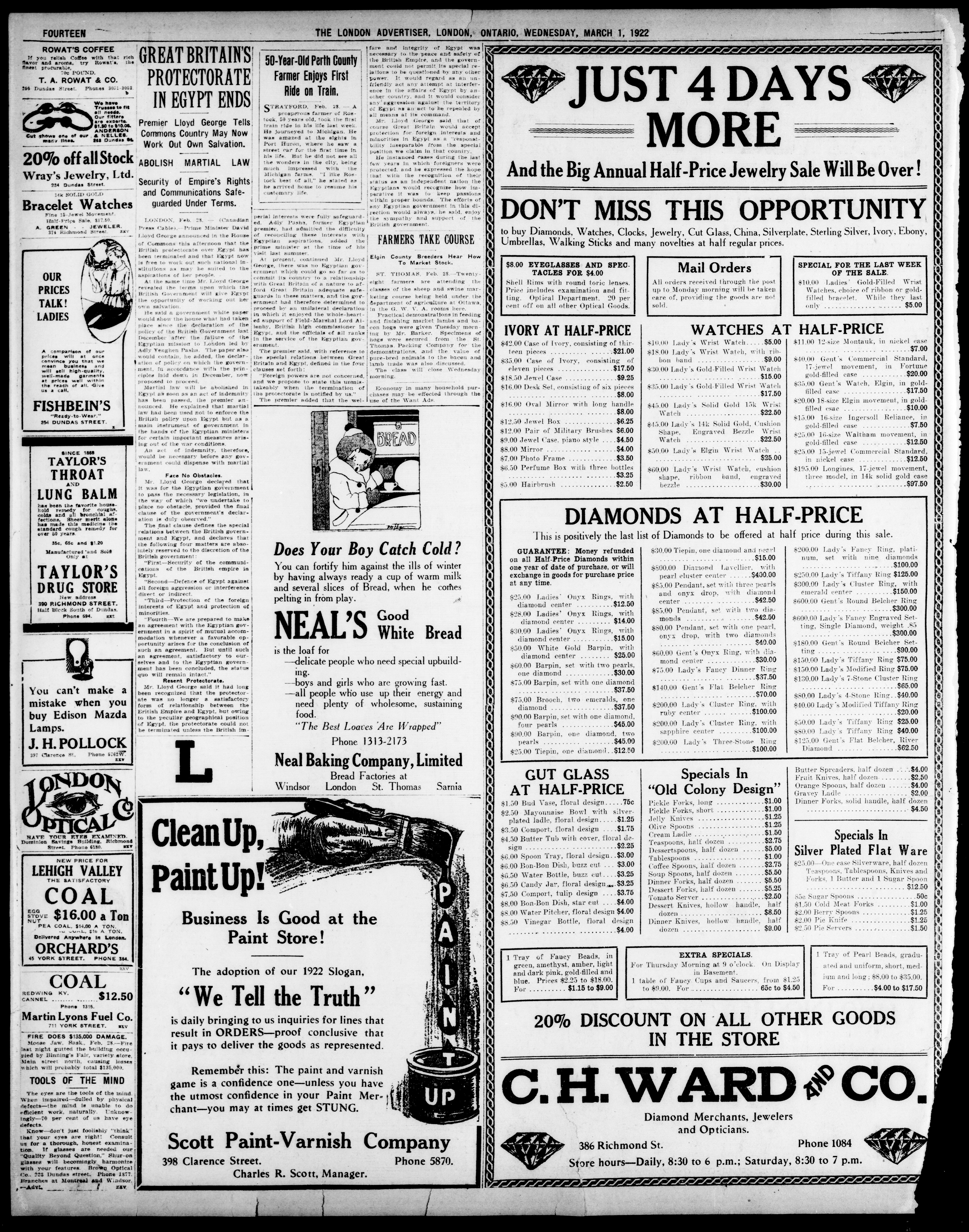 - The London Advertiser : 57th Year, No. 23272 (March 1, 1922)
