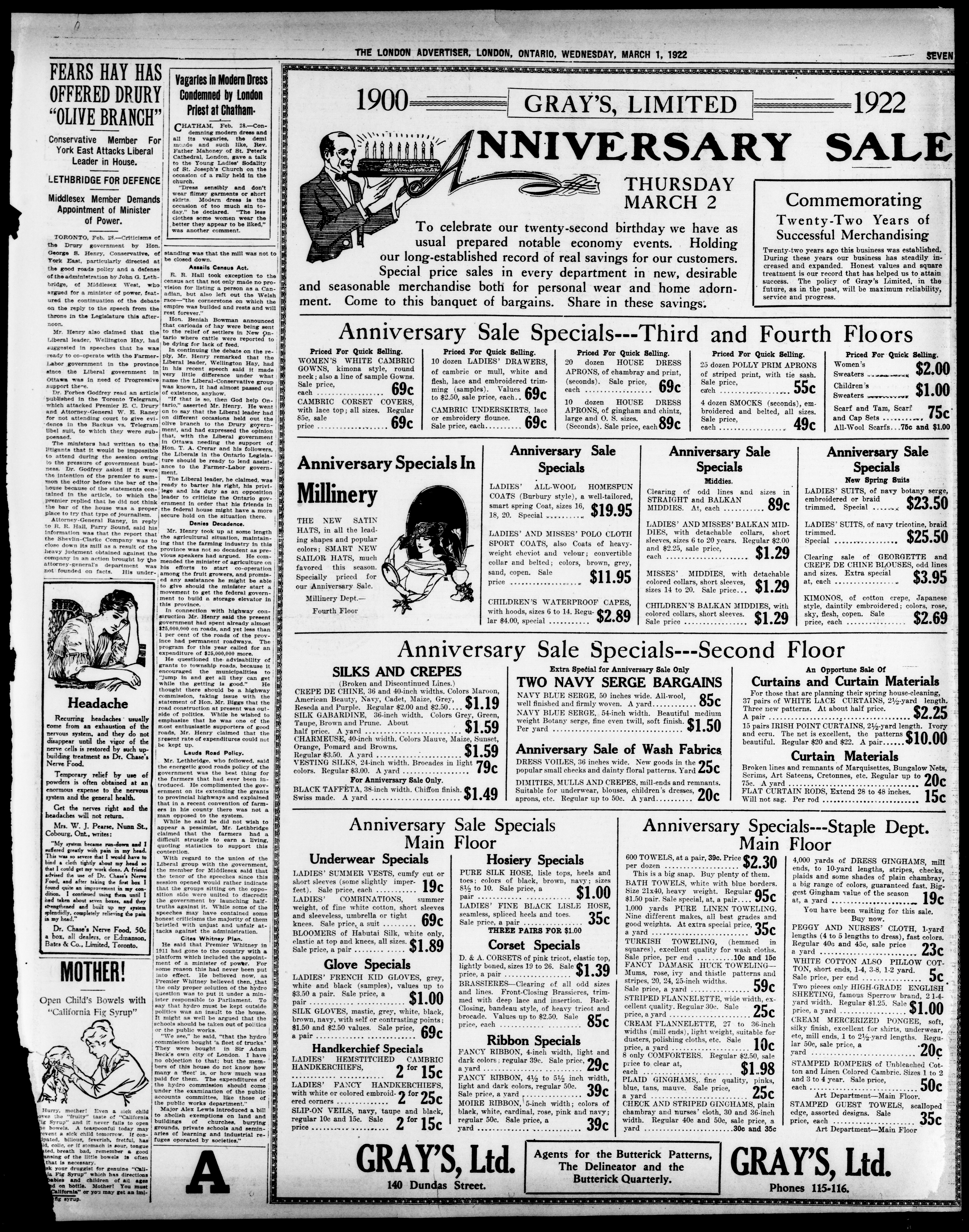 - The London Advertiser : 57th Year, No. 23272 (March 1, 1922)
