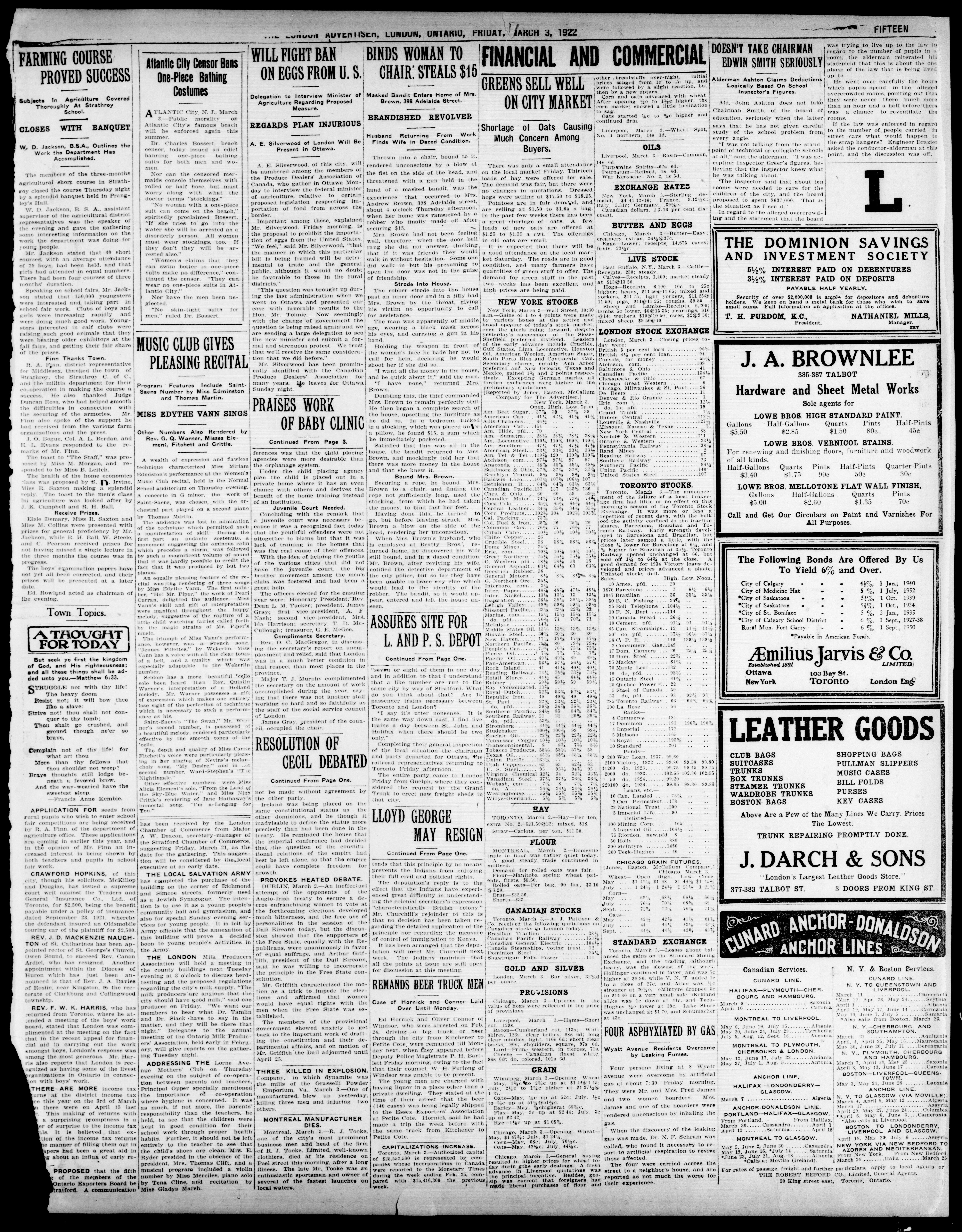London advertiser. : The London Advertiser : 57th Year, No. 23274 (March 3, 1922)