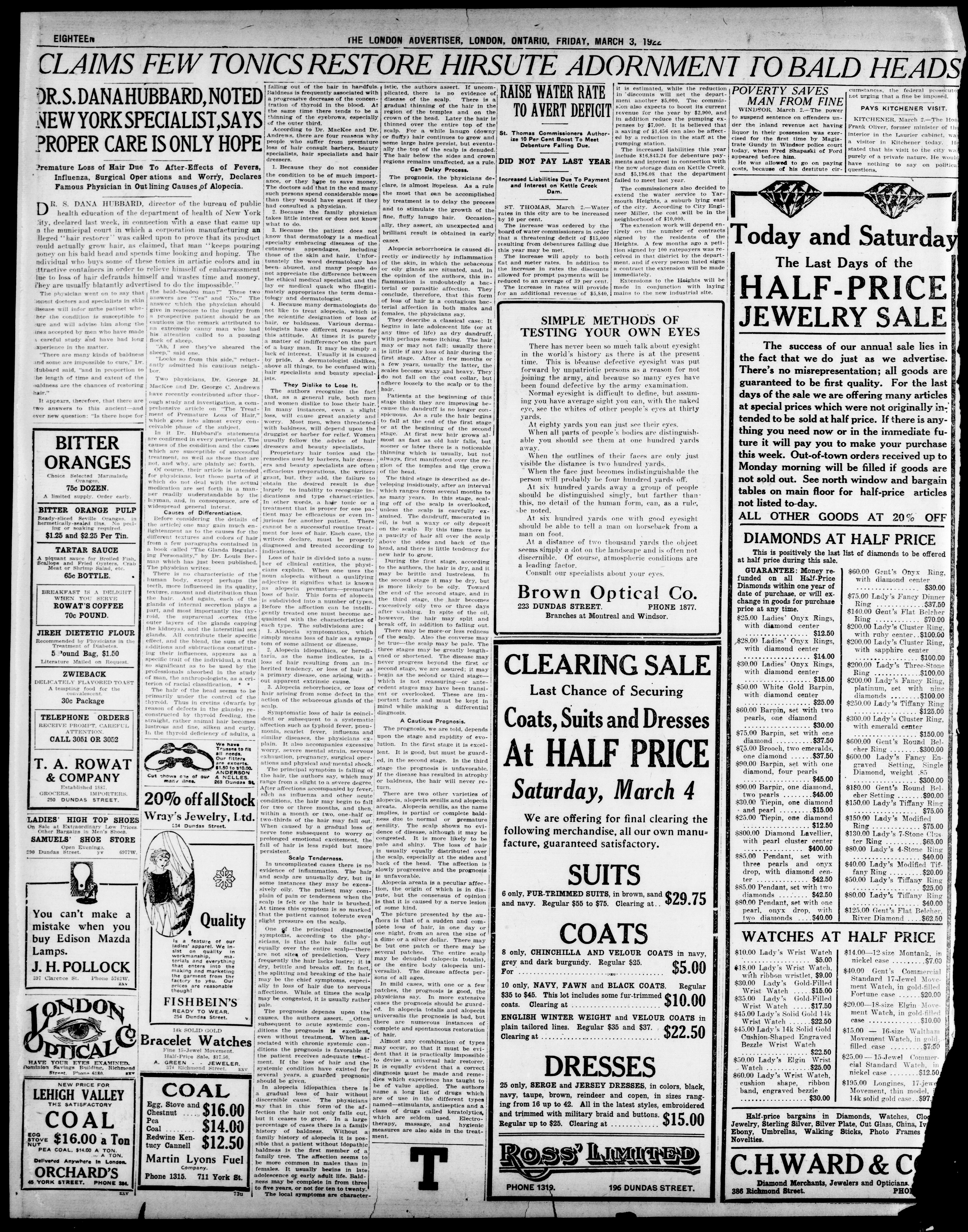 - The London Advertiser : 57th Year, No. 23274 (March 3, 1922)
