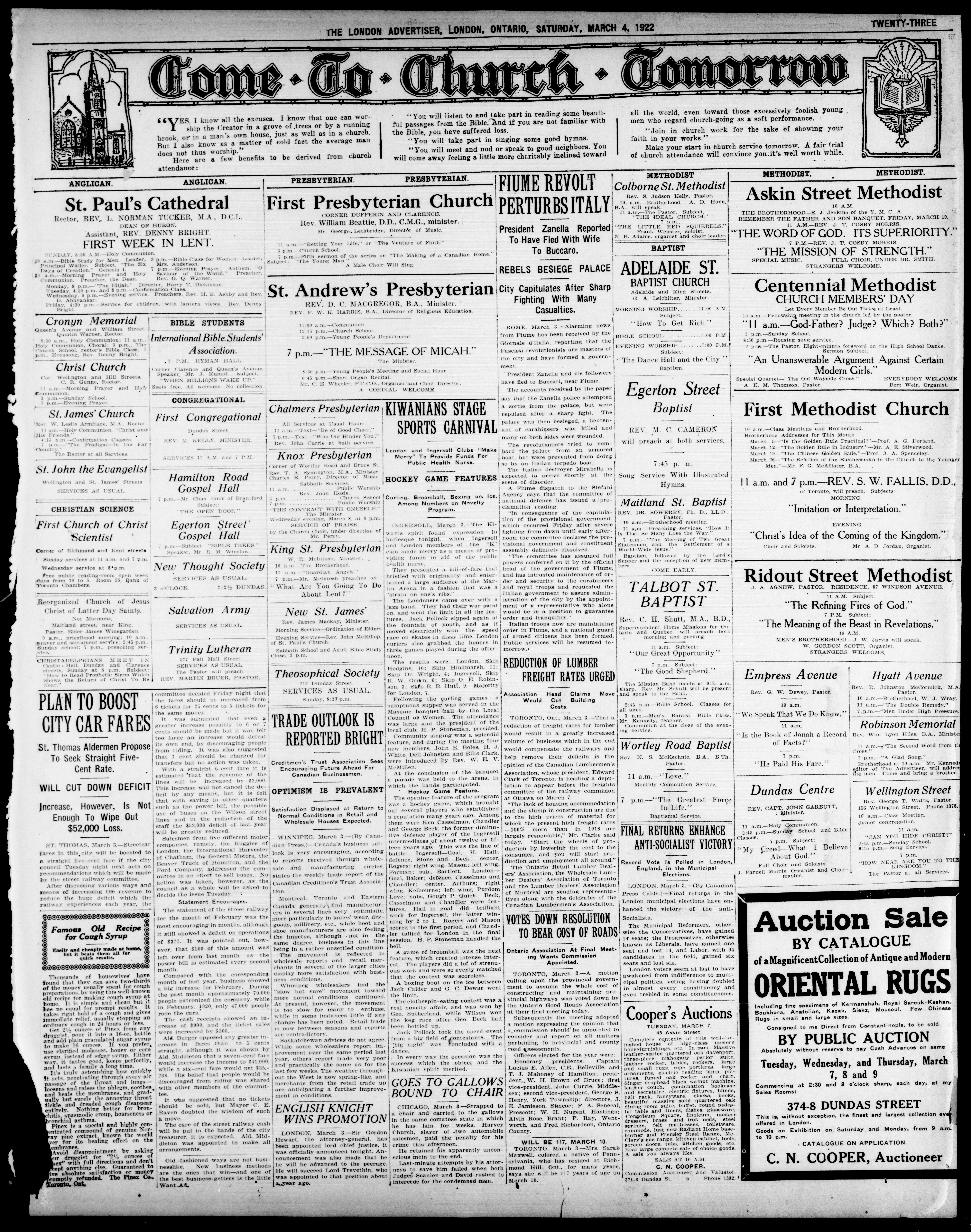 - The London Advertiser : 57th Year, No. 23275 (March 4, 1922)