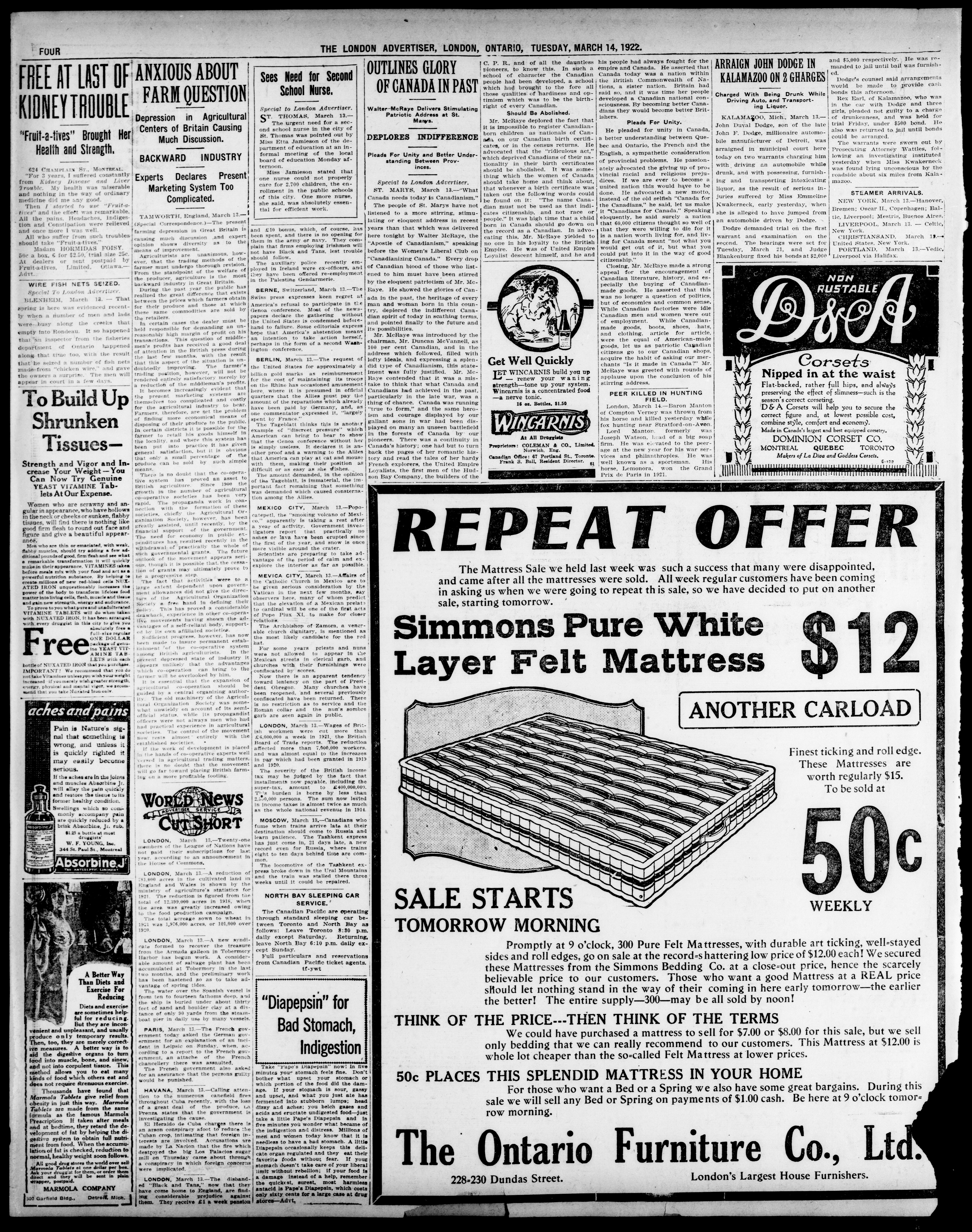 London advertiser. : The London Advertiser : 57th Year, No. 23283 (March 14, 1922)