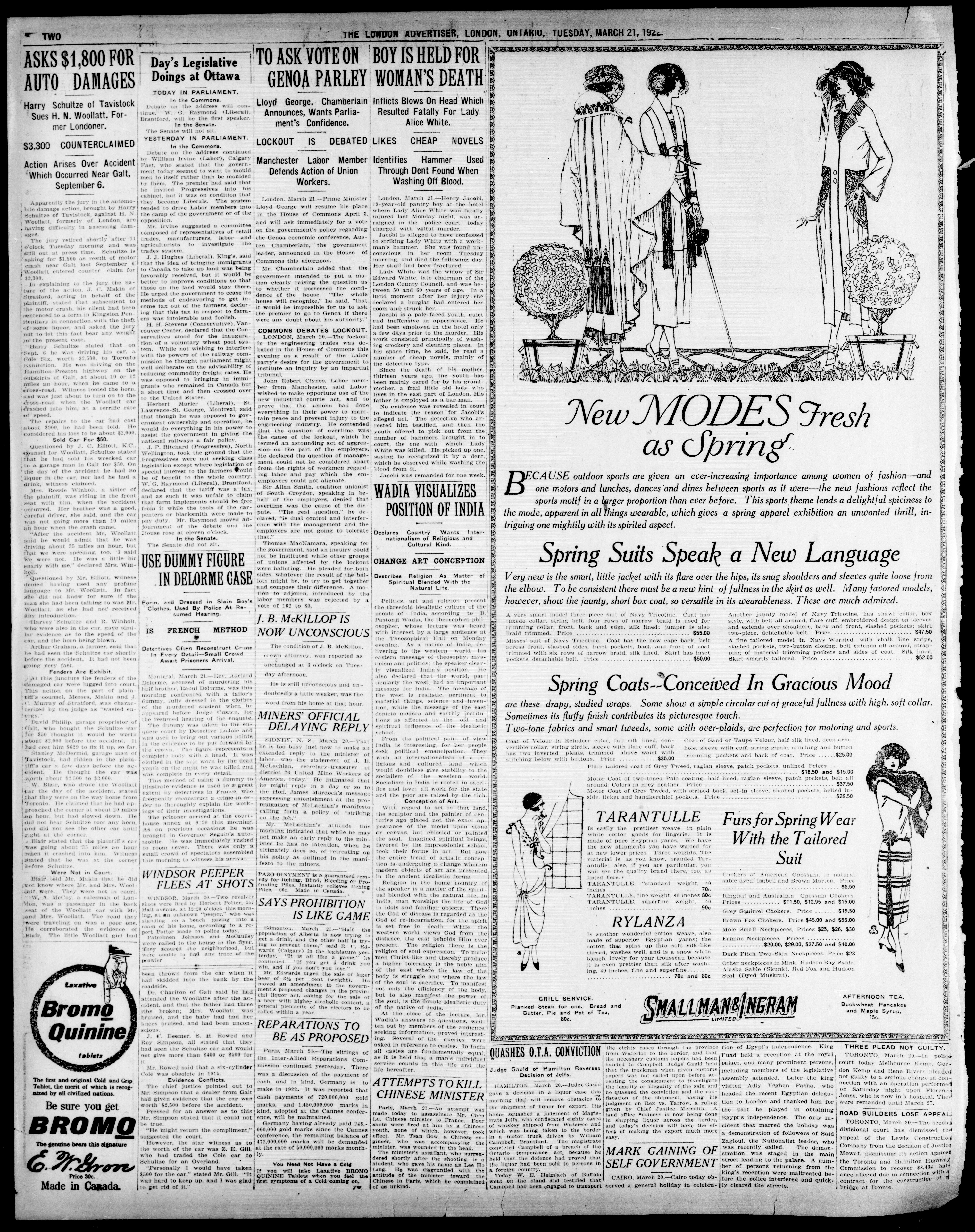 London advertiser. : The London Advertiser : 57th Year, No. 23289 (March 21, 1922)
