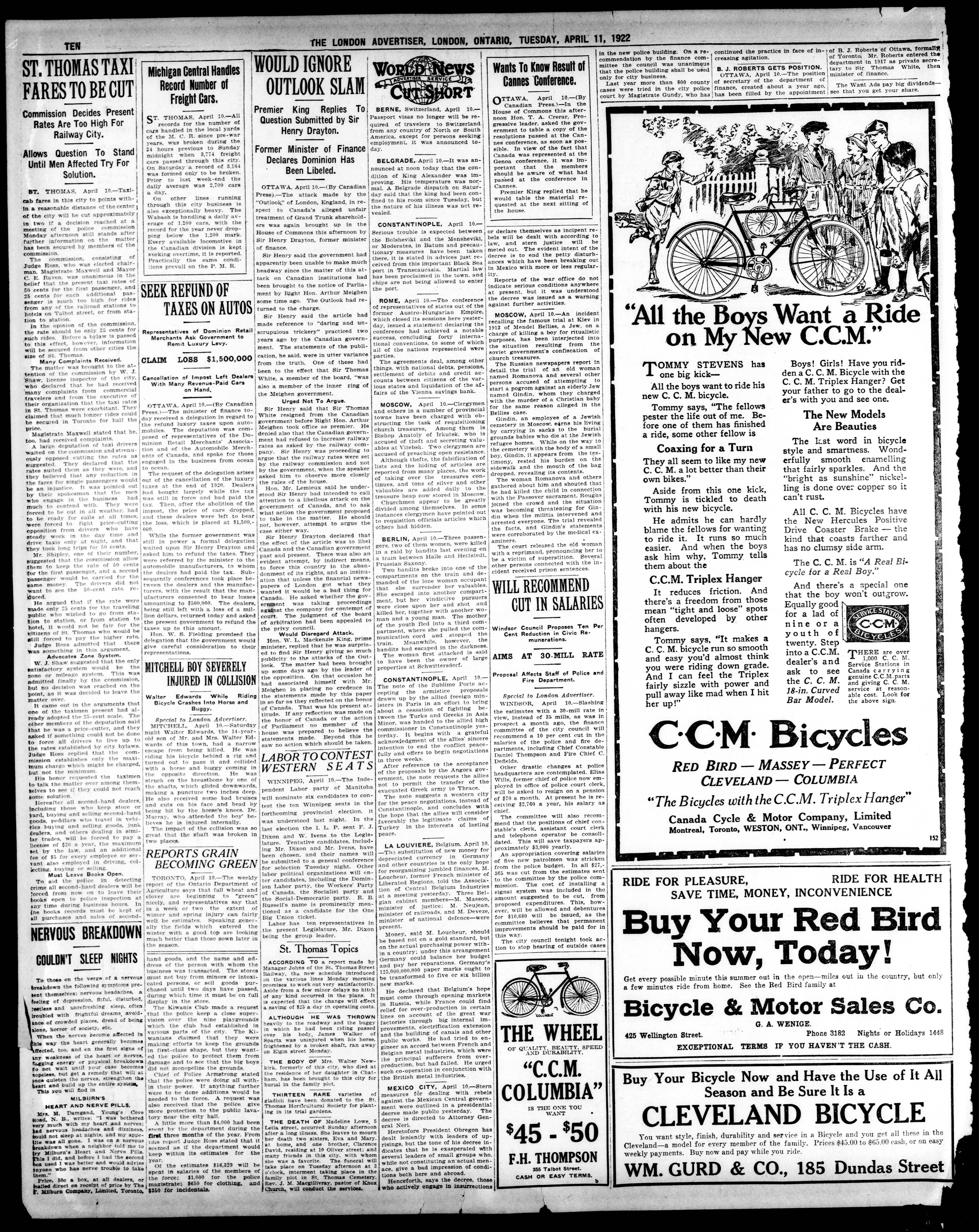 - The London Advertiser : 57th Year, No. 23307 (April 11, 1922)