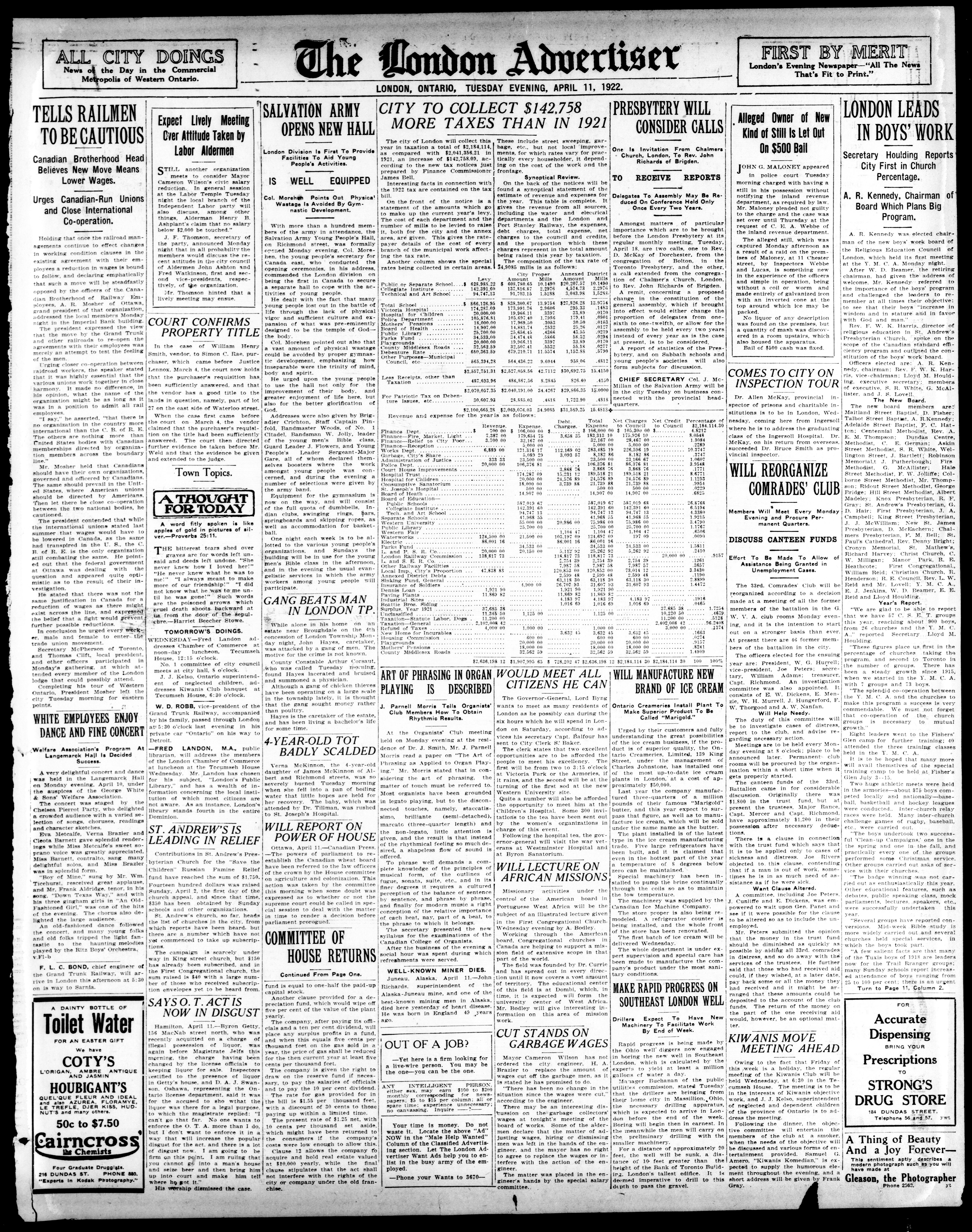 - The London Advertiser : 57th Year, No. 23307 (April 11, 1922)