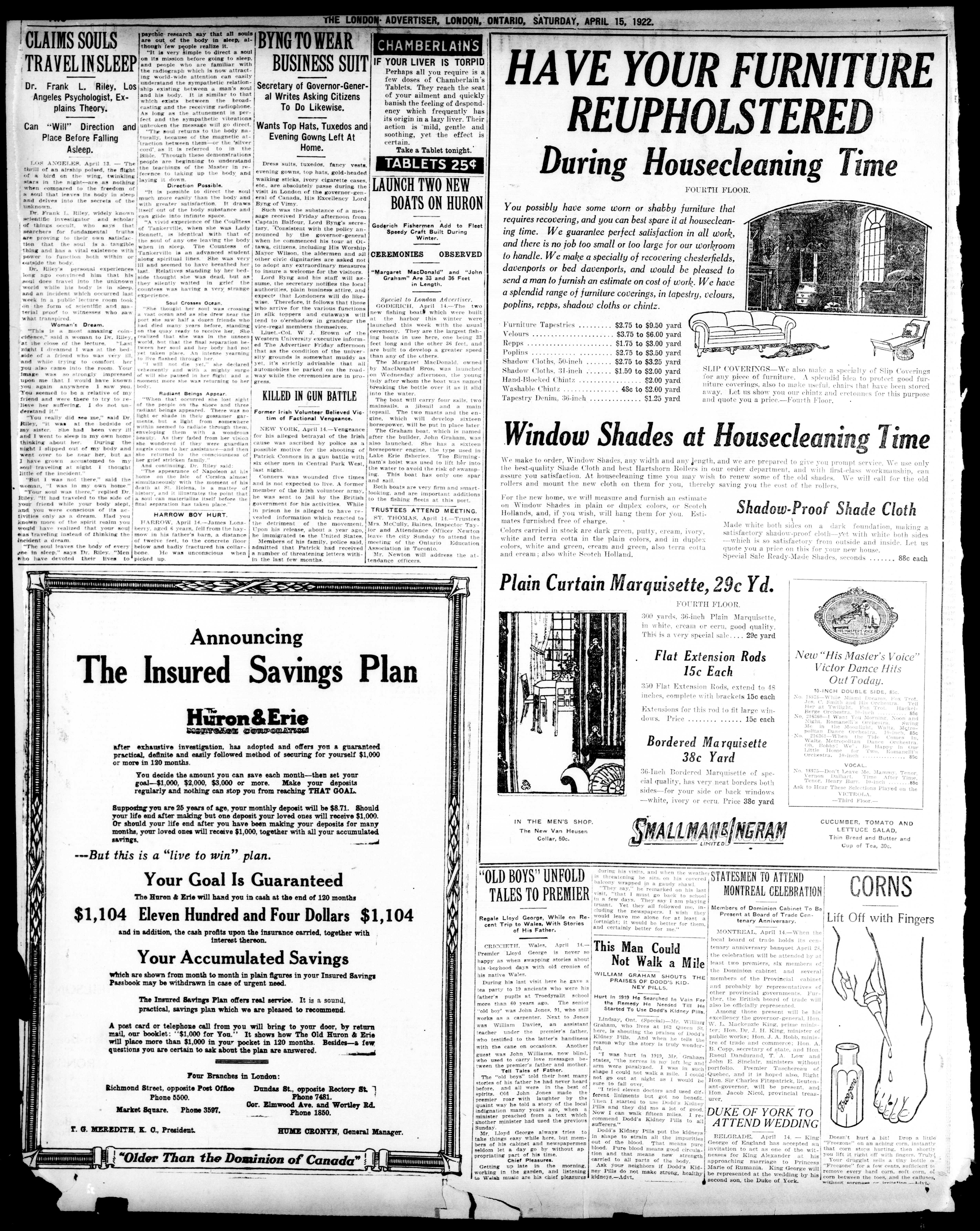 London advertiser. : The London Advertiser : 57th Year, No. 23311 (April 15, 1922)